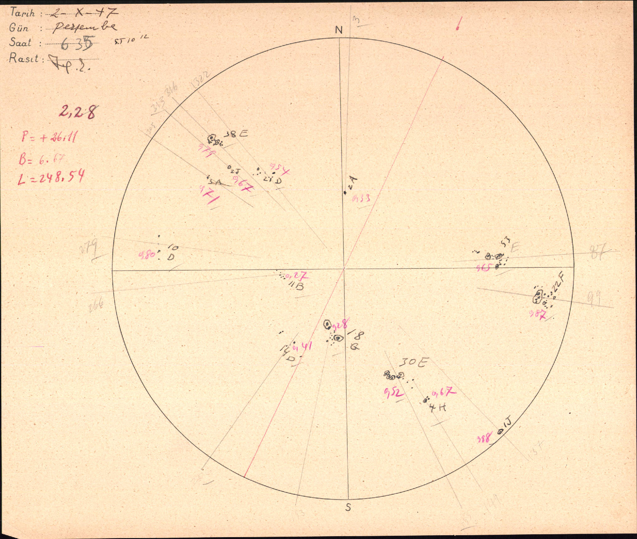 Güneş Lekesi Çizimi - 02.10.1947