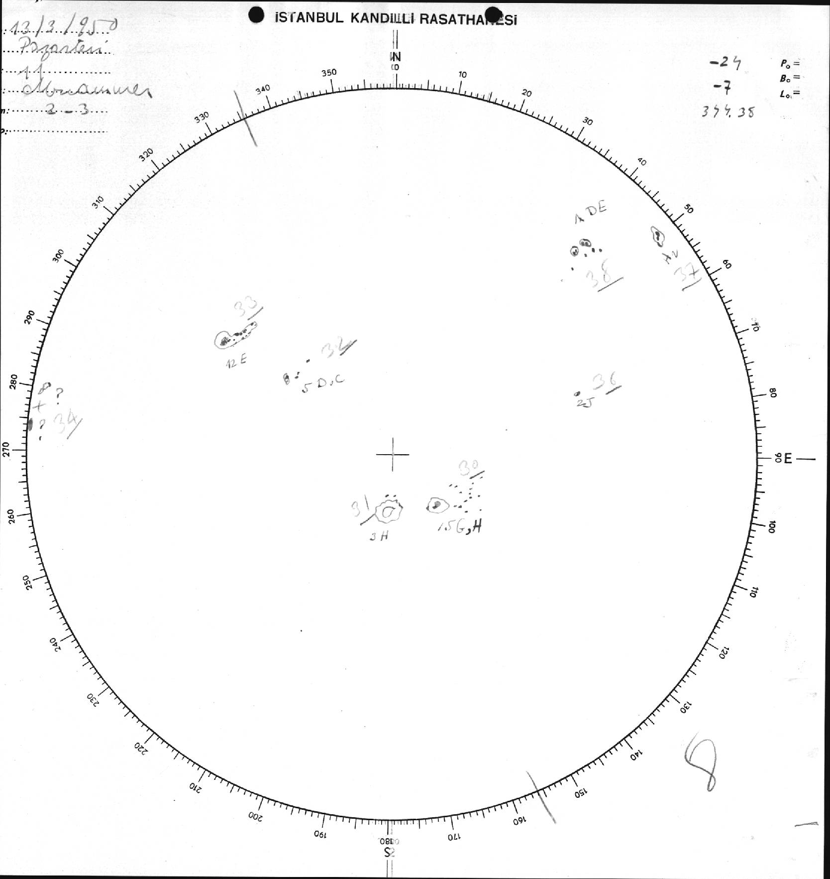 Güneş Lekesi Çizimi - 13.03.1950