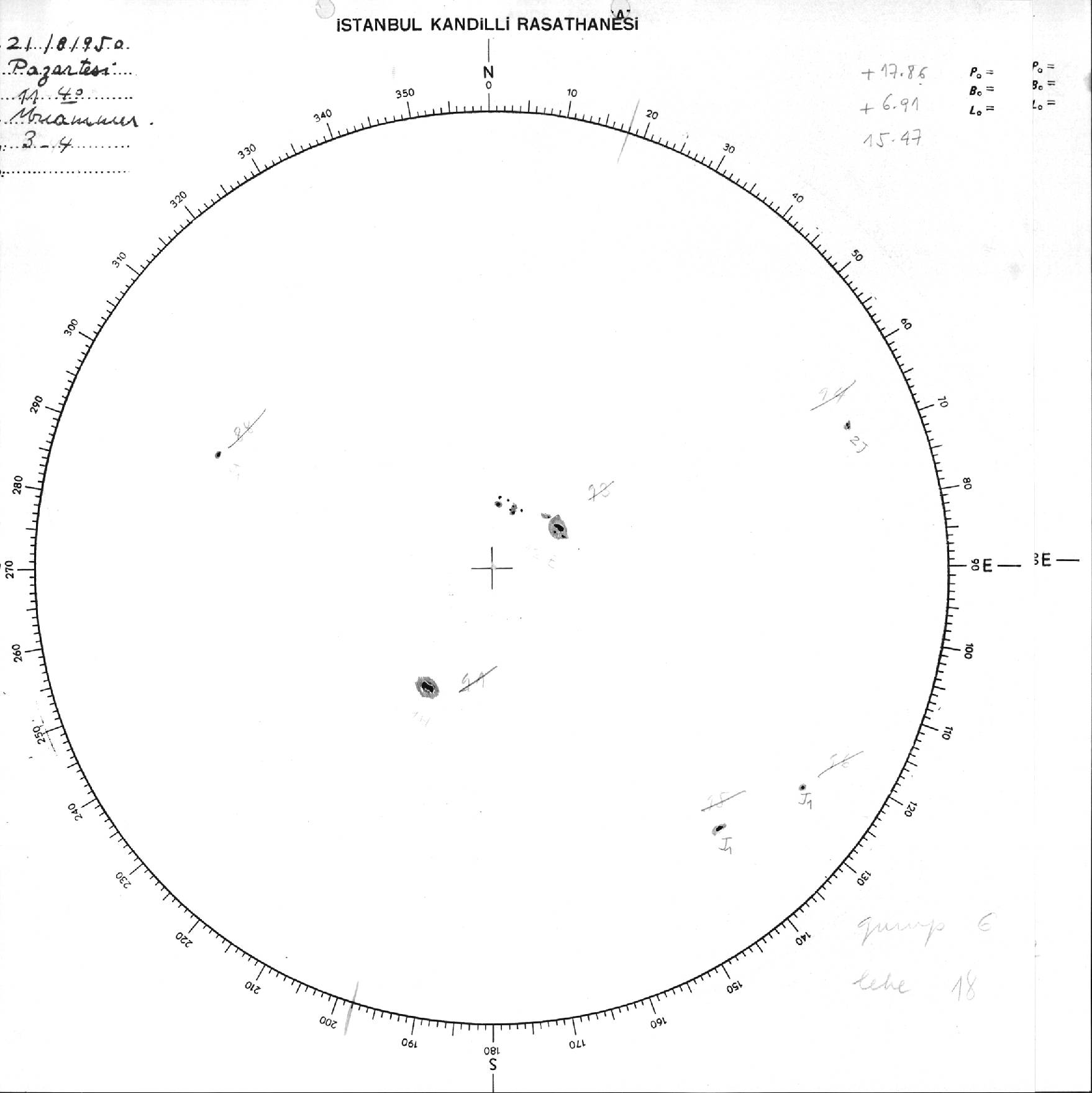 Güneş Lekesi Çizimi - 21.08.1950