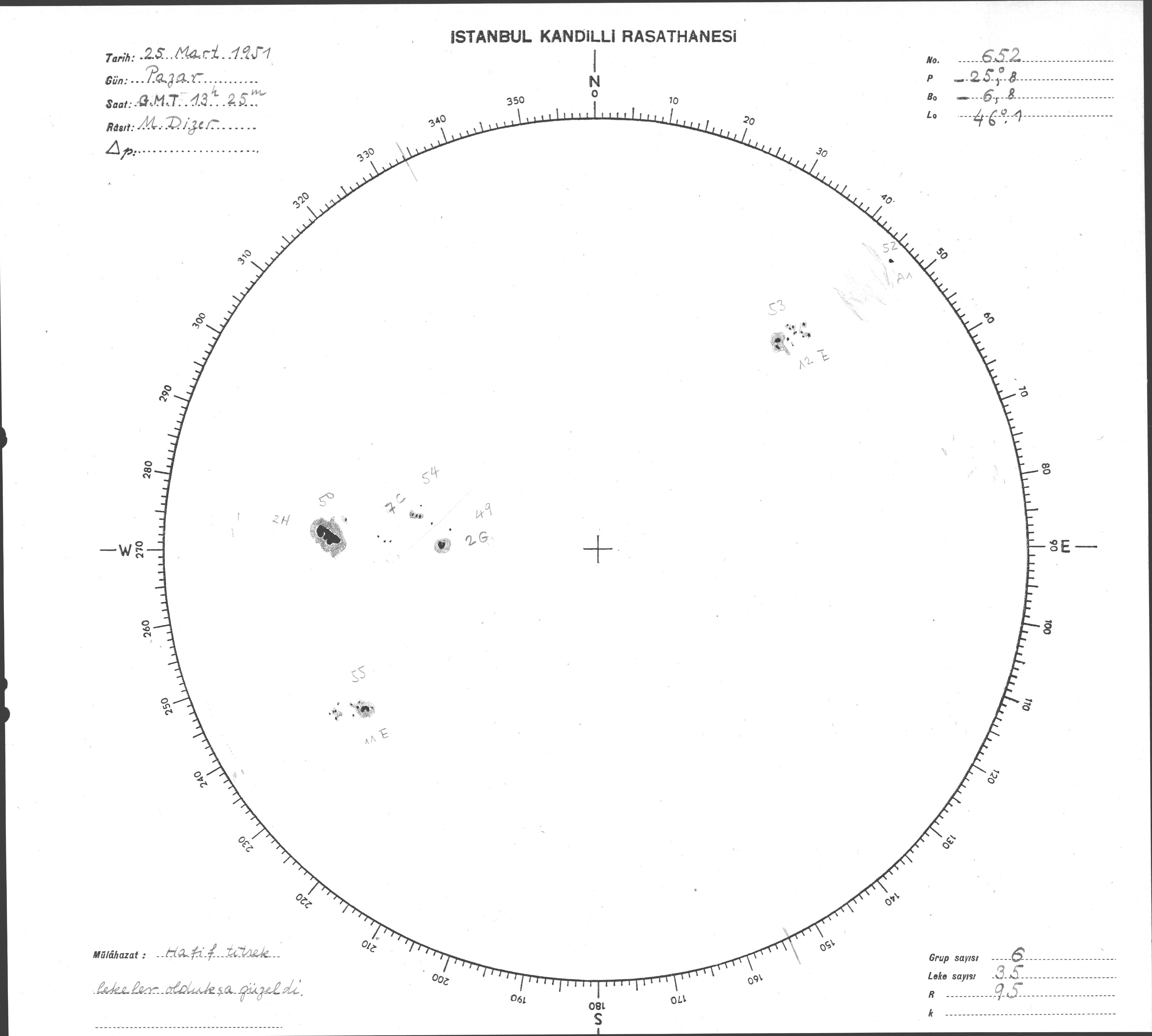 Güneş Lekesi Çizimi - 25.03.1951
