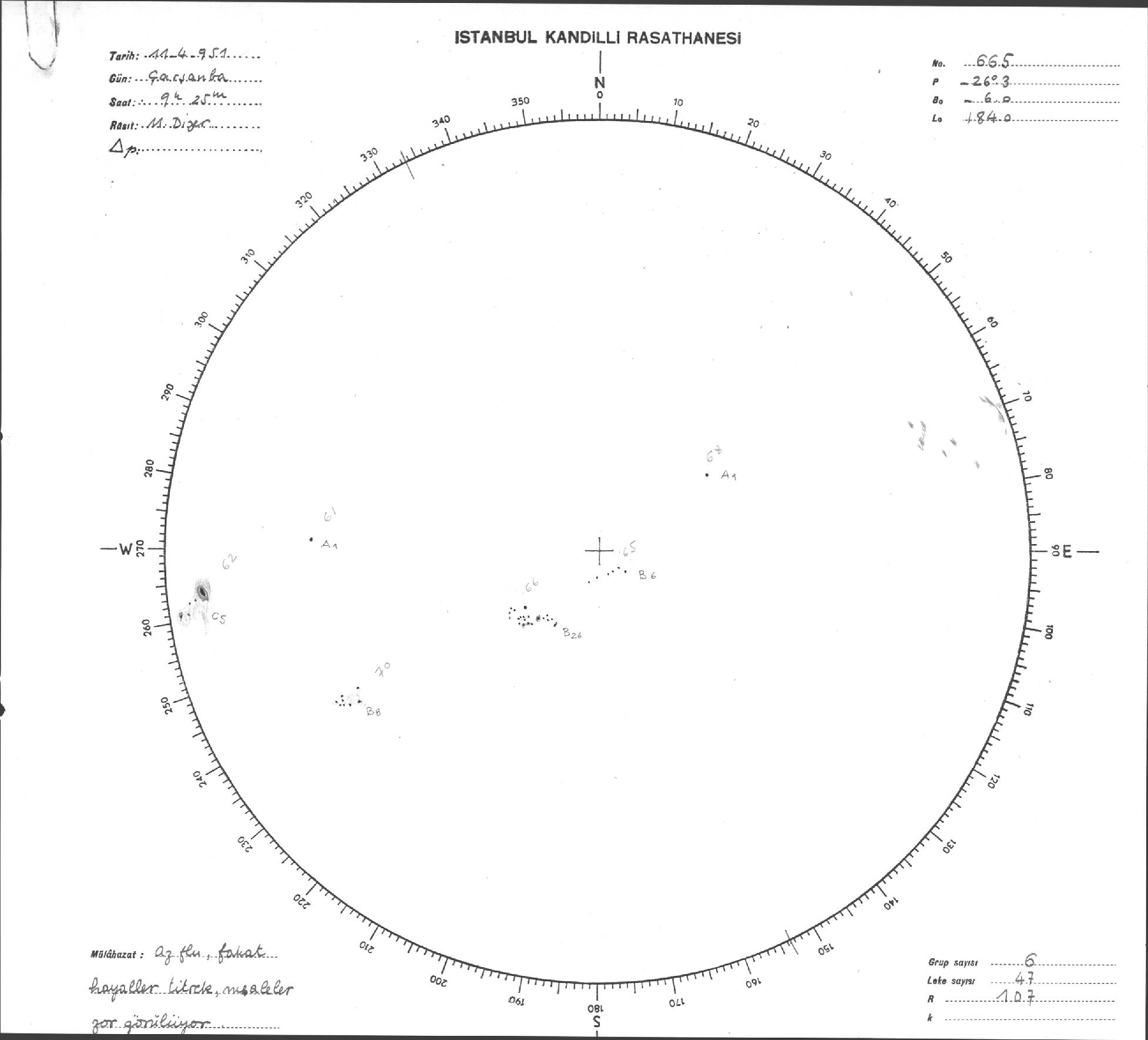 Güneş Lekesi Çizimi - 11.04.1951