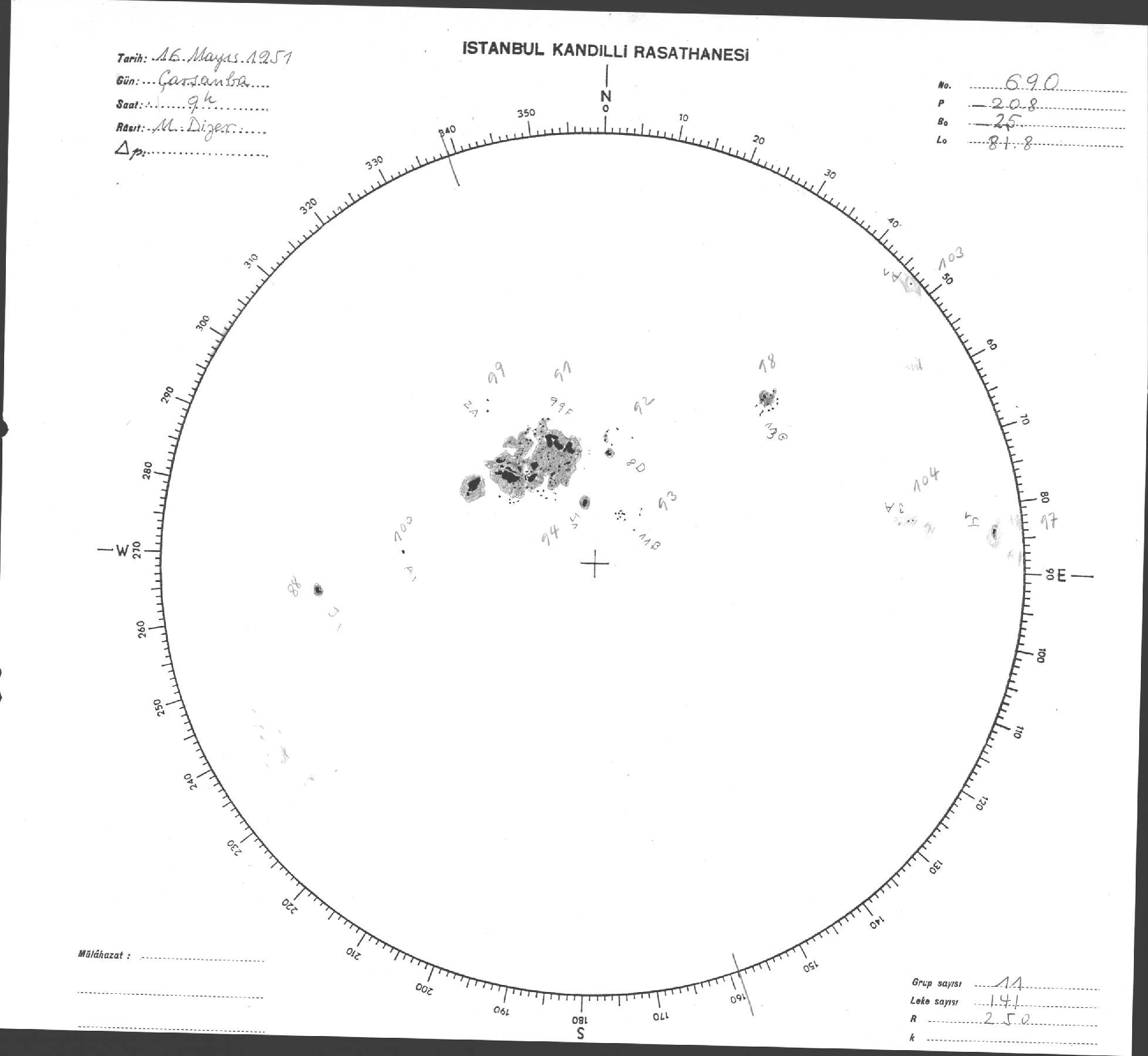 Güneş Lekesi Çizimi - 16.05.1951