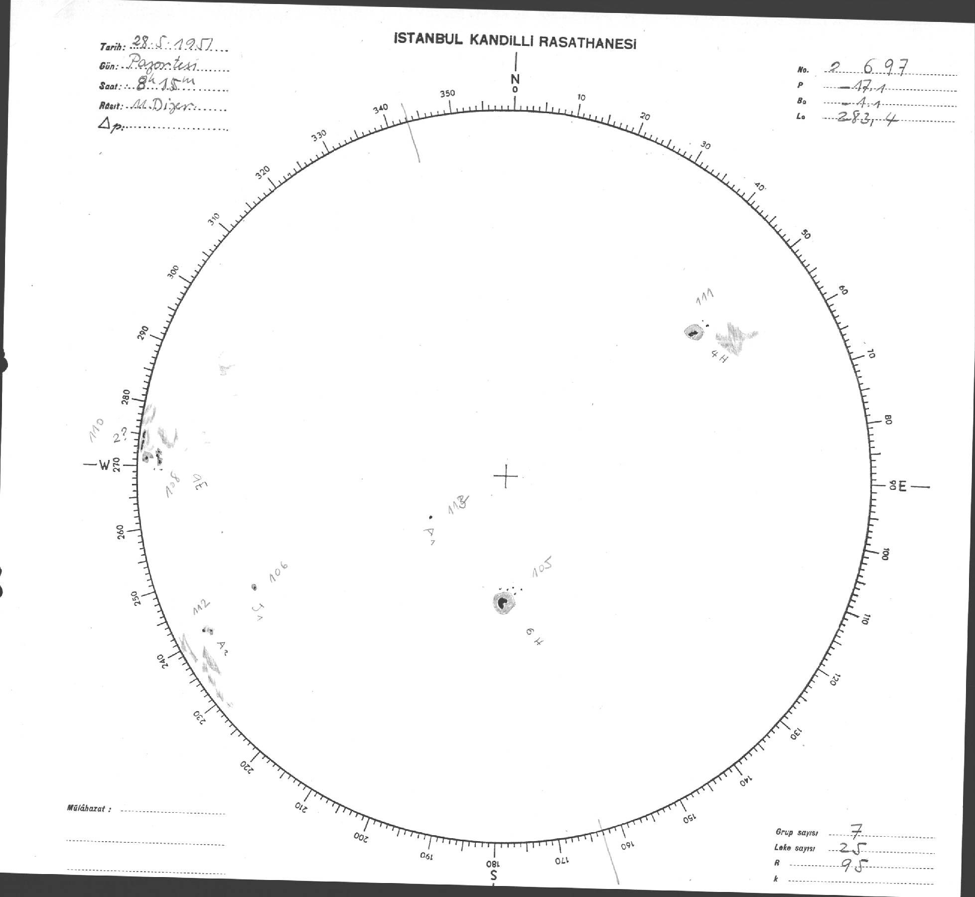Güneş Lekesi Çizimi - 28.05.1951