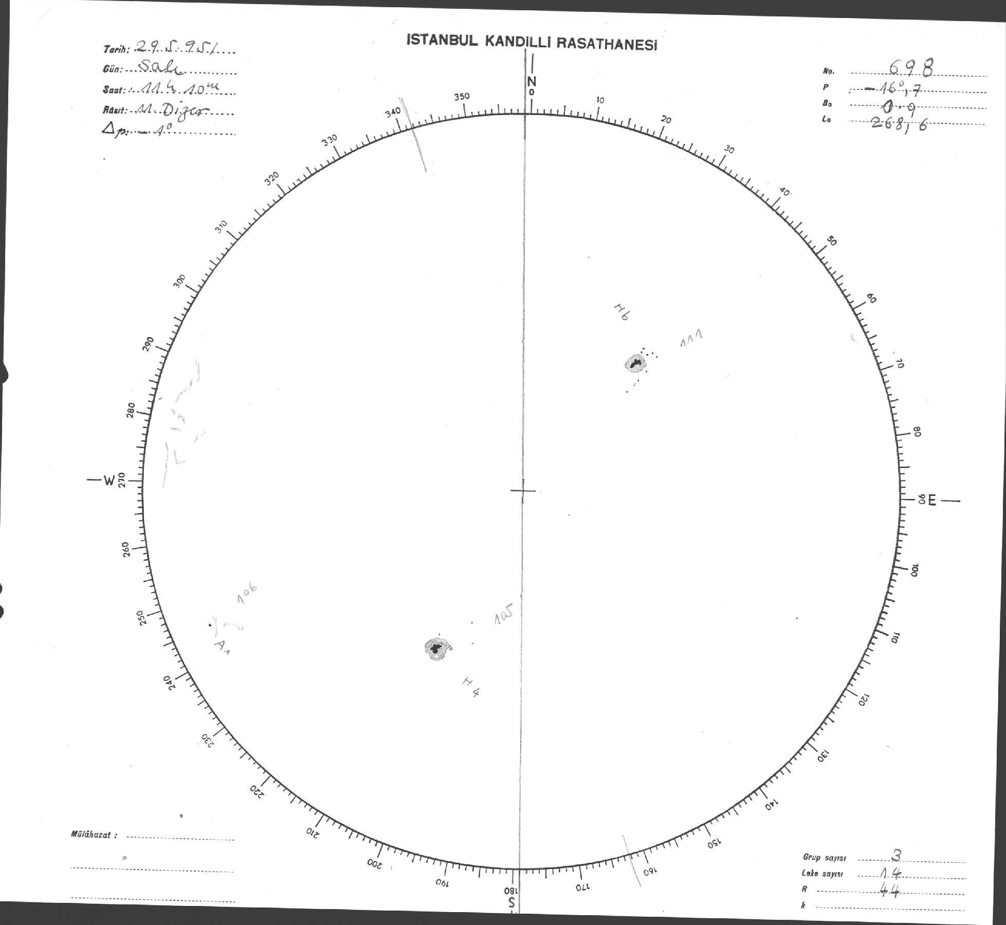 Güneş Lekesi Çizimi - 29.05.1951