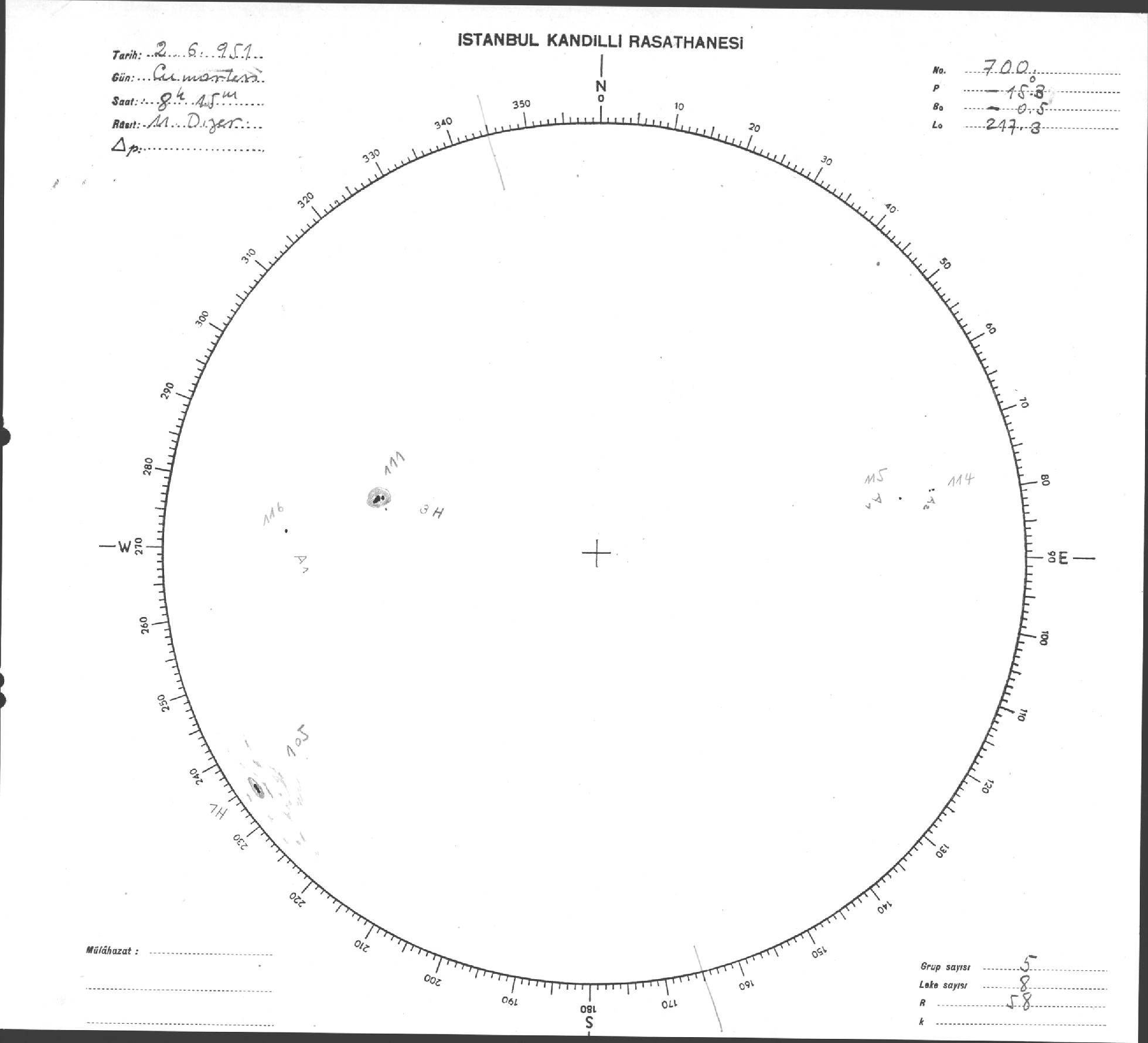 Güneş Lekesi Çizimi - 02.06.1951