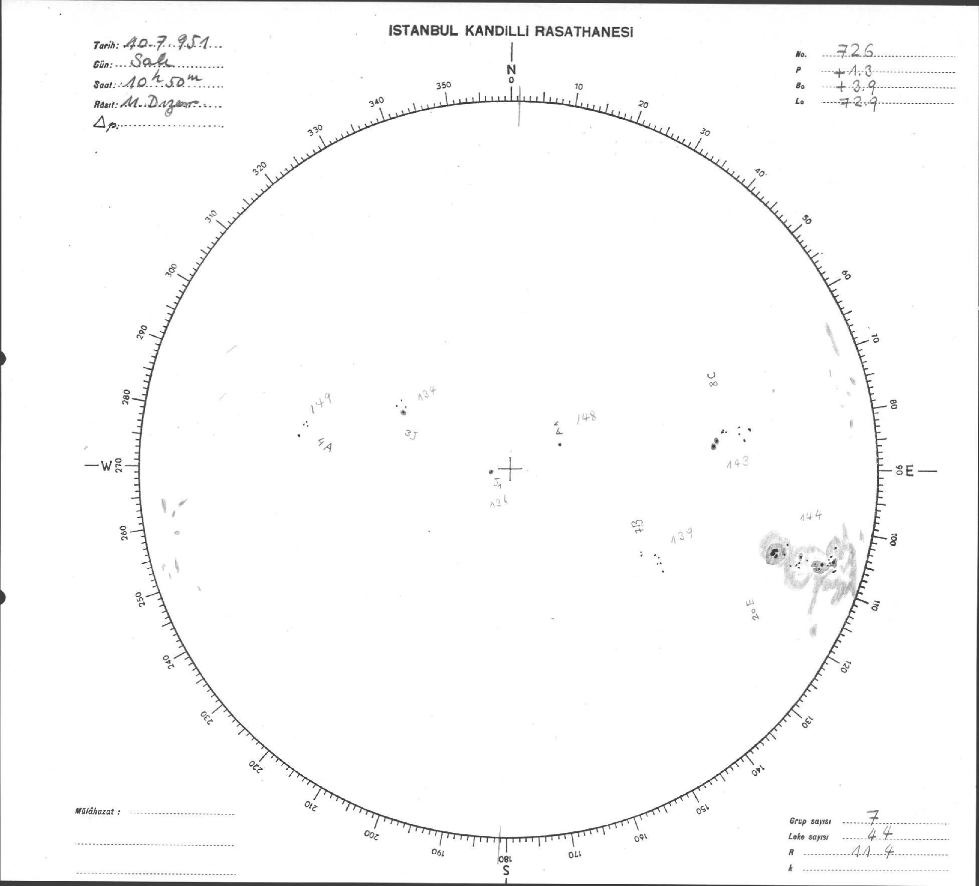 Güneş Lekesi Çizimi - 10.07.1951