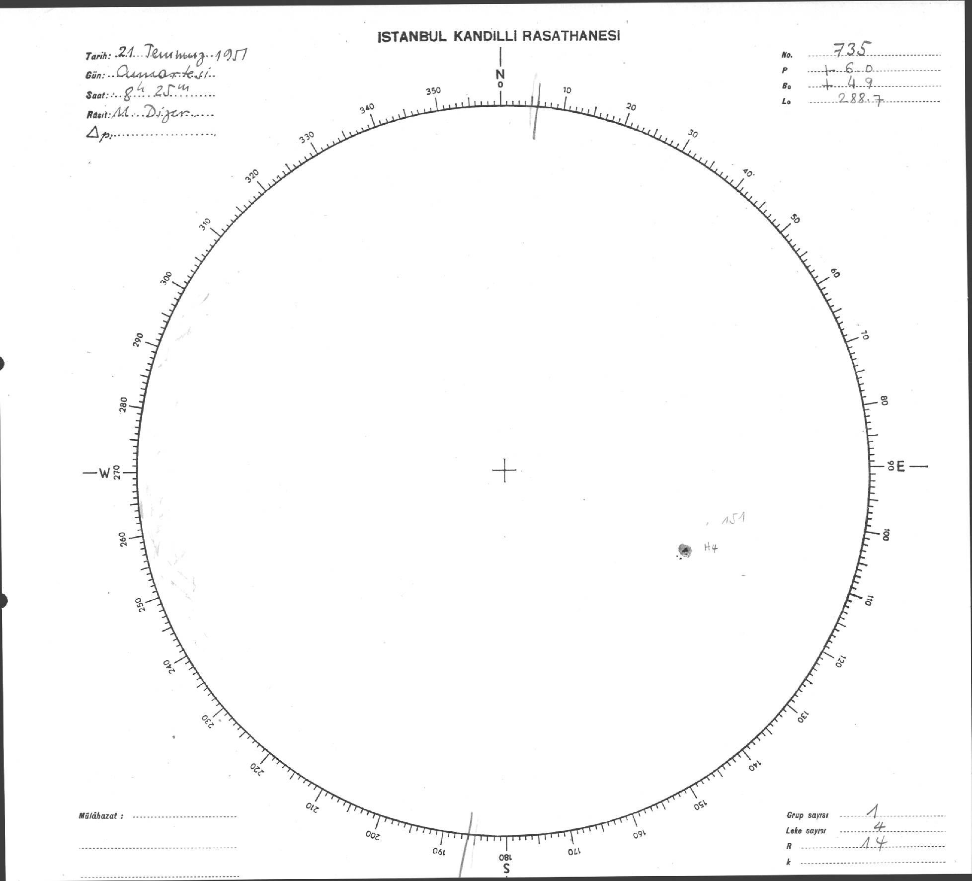 Güneş Lekesi Çizimi - 21.07.1951