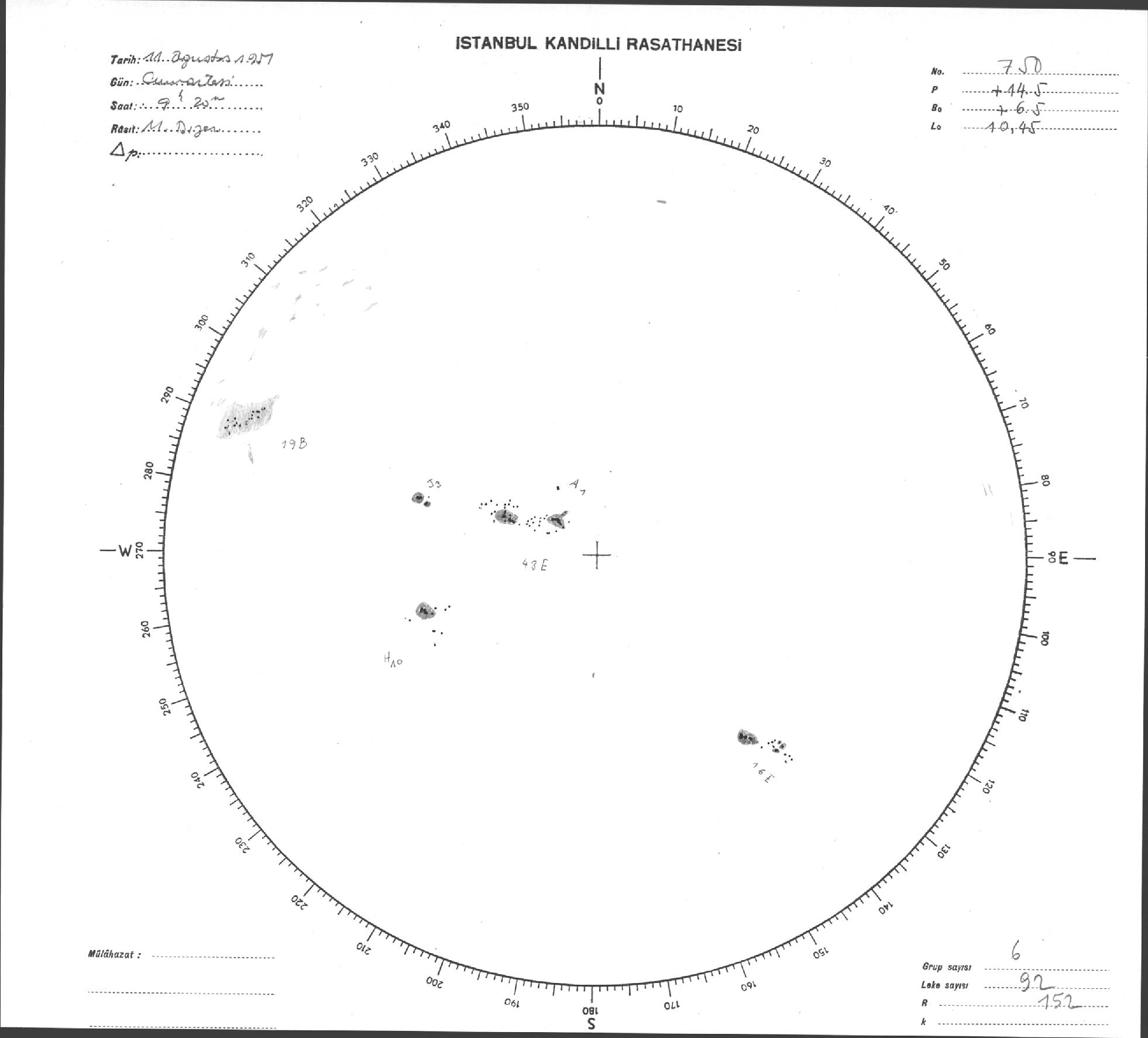 Güneş Lekesi Çizimi - 11.08.1951