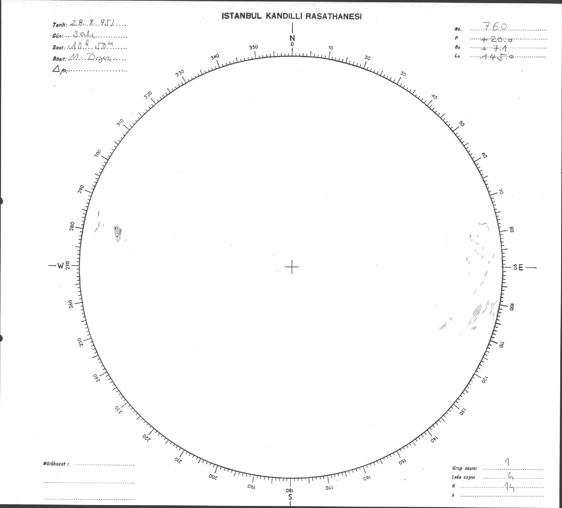 Güneş Lekesi Çizimi - 28.08.1951