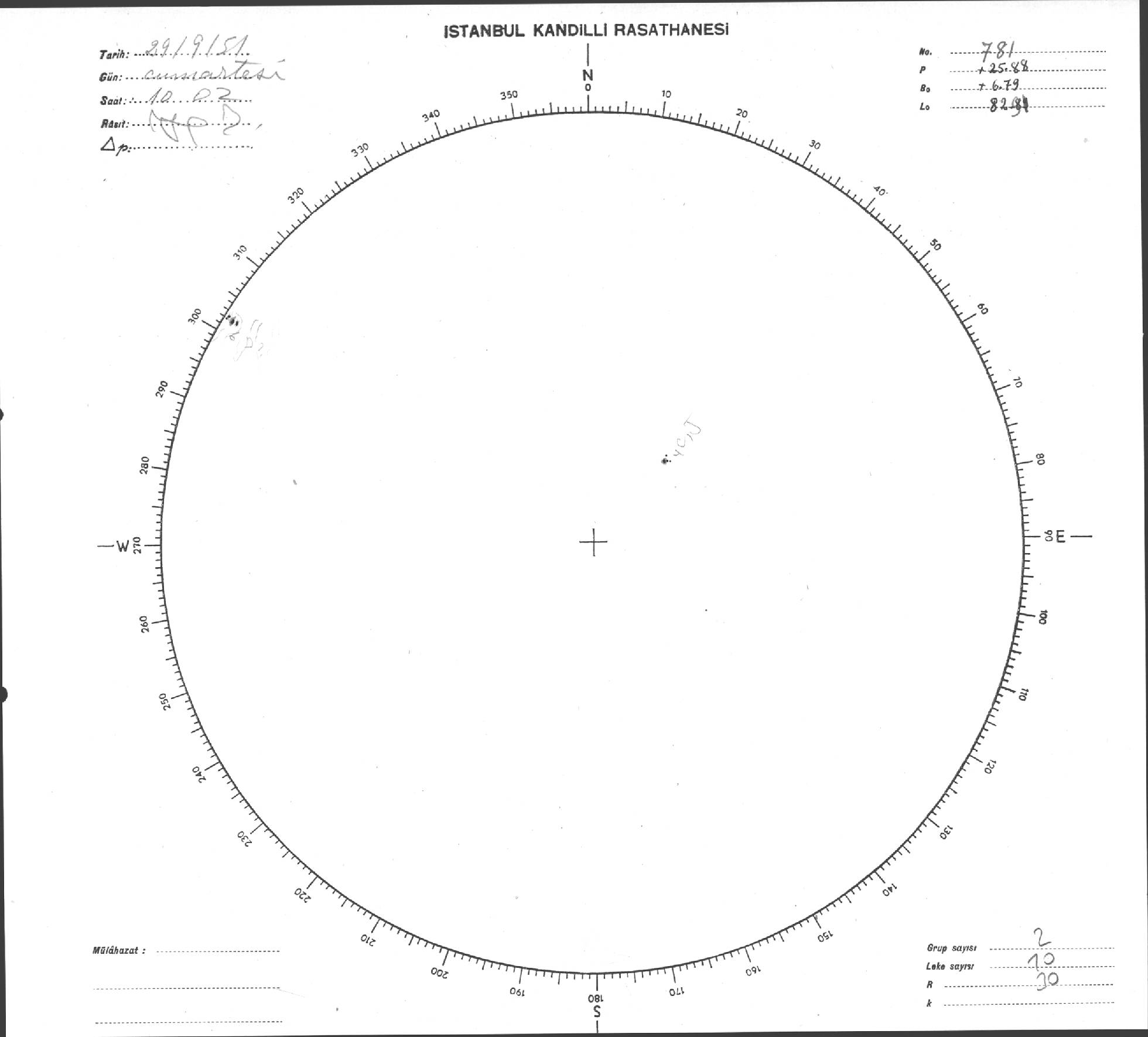 Güneş Lekesi Çizimi - 29.09.1951