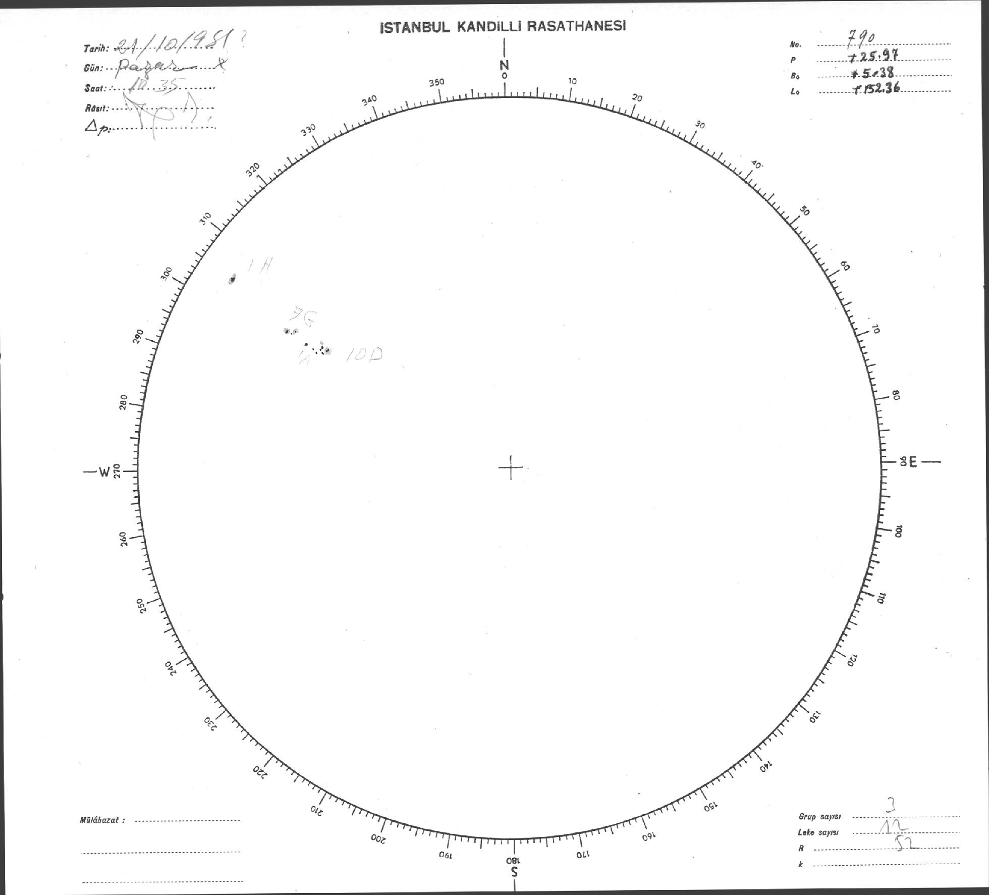 Güneş Lekesi Çizimi - 21.10.1951