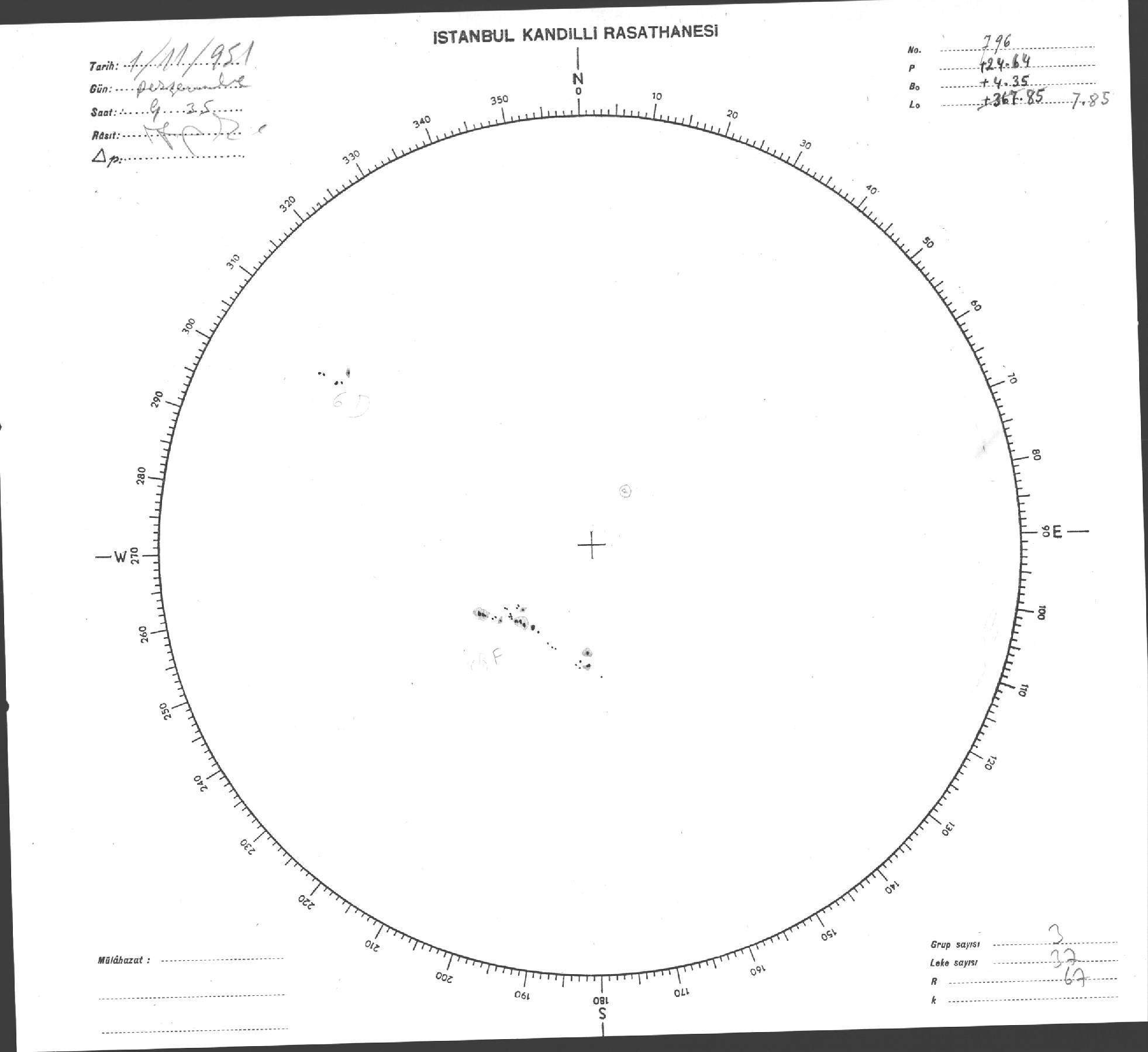Güneş Lekesi Çizimi - 01.11.1951