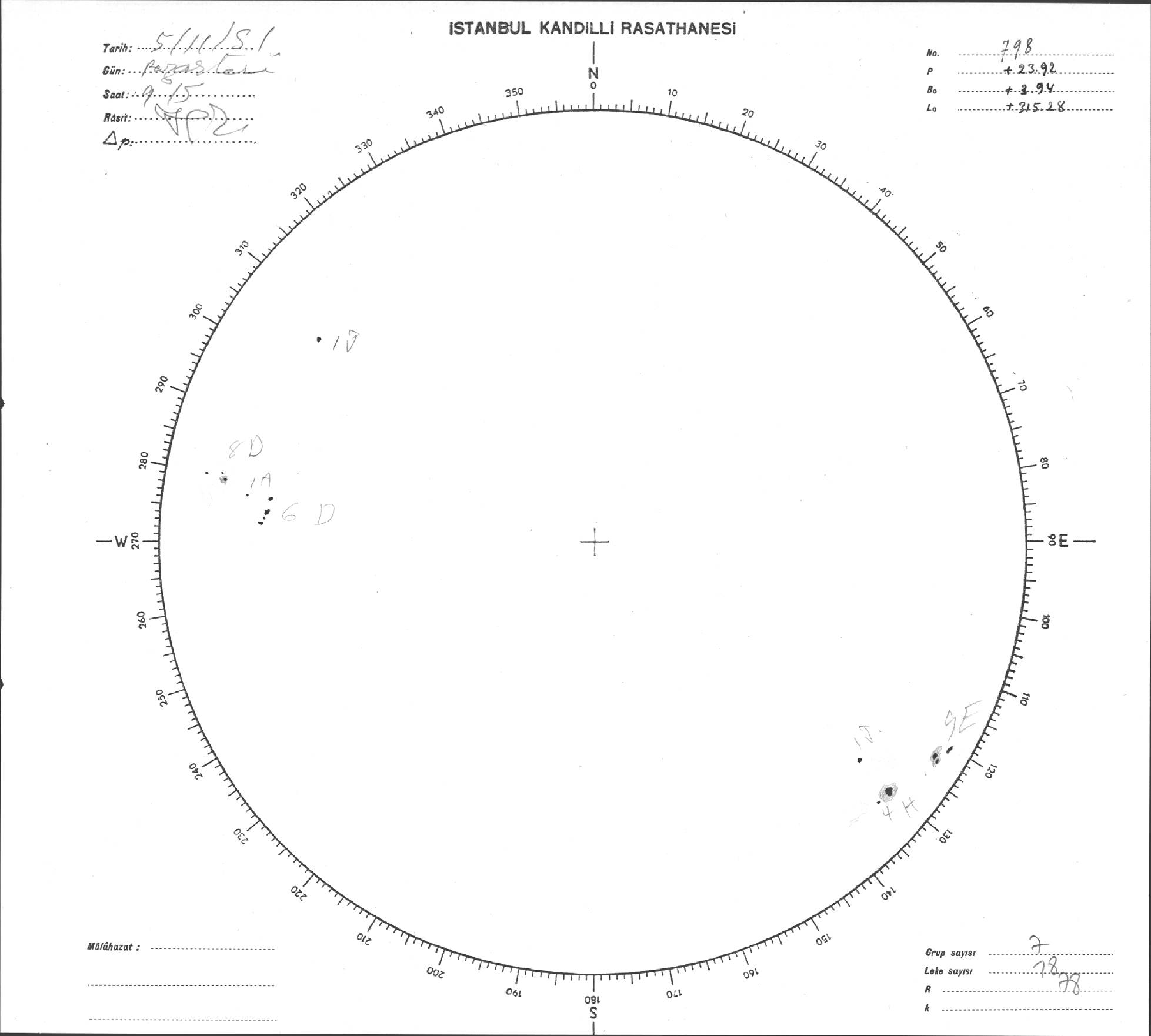 Güneş Lekesi Çizimi - 05.11.1951