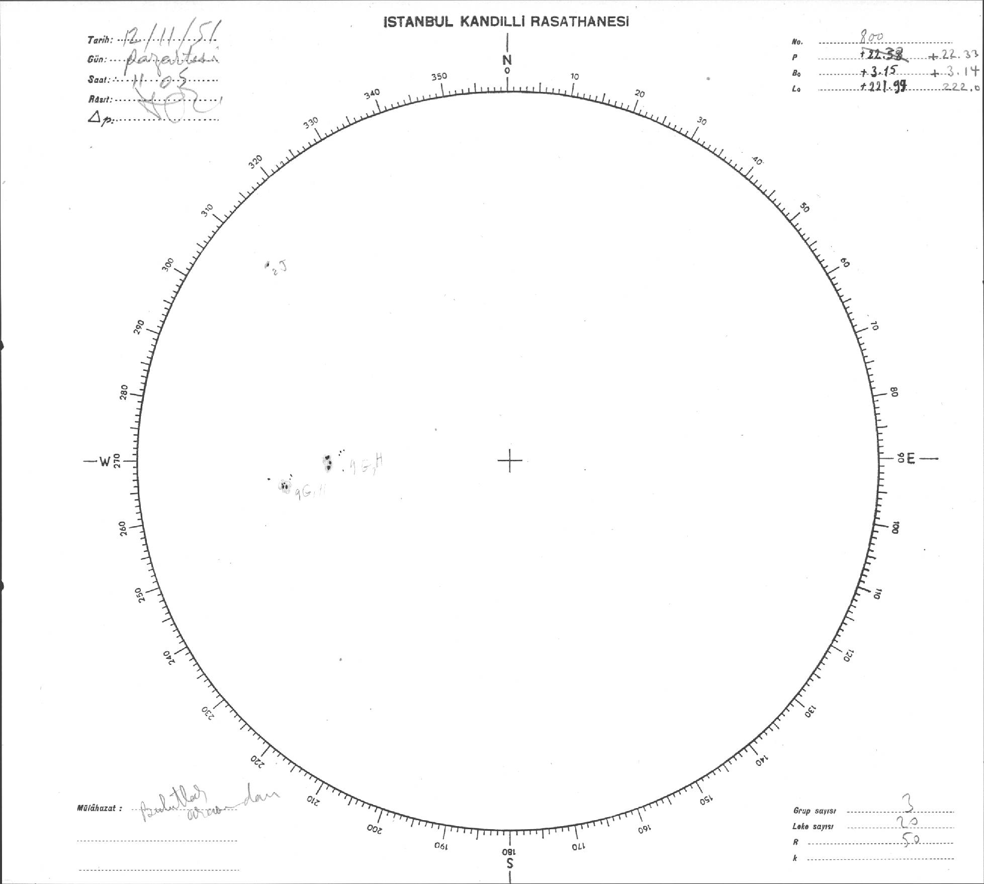 Güneş Lekesi Çizimi - 12.11.1951