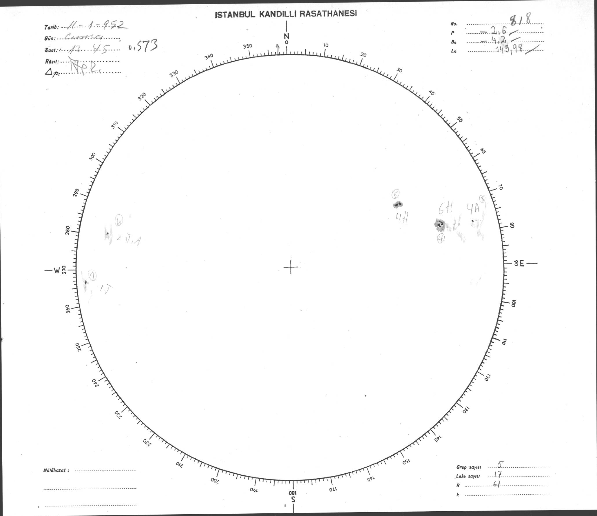 Güneş Lekesi Çizimi - 11.01.1952