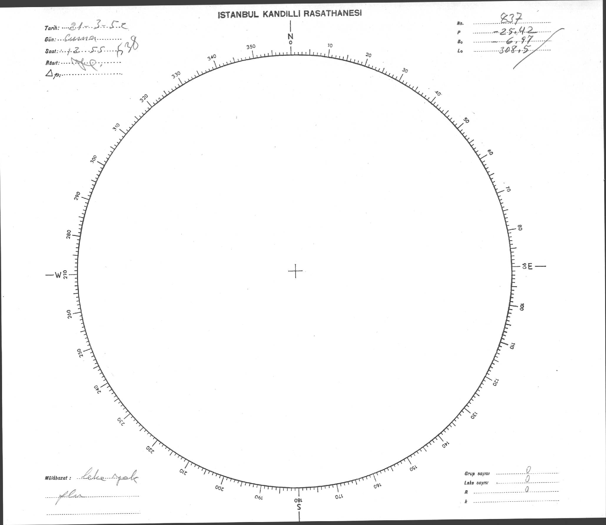 Güneş Lekesi Çizimi - 21.03.1952