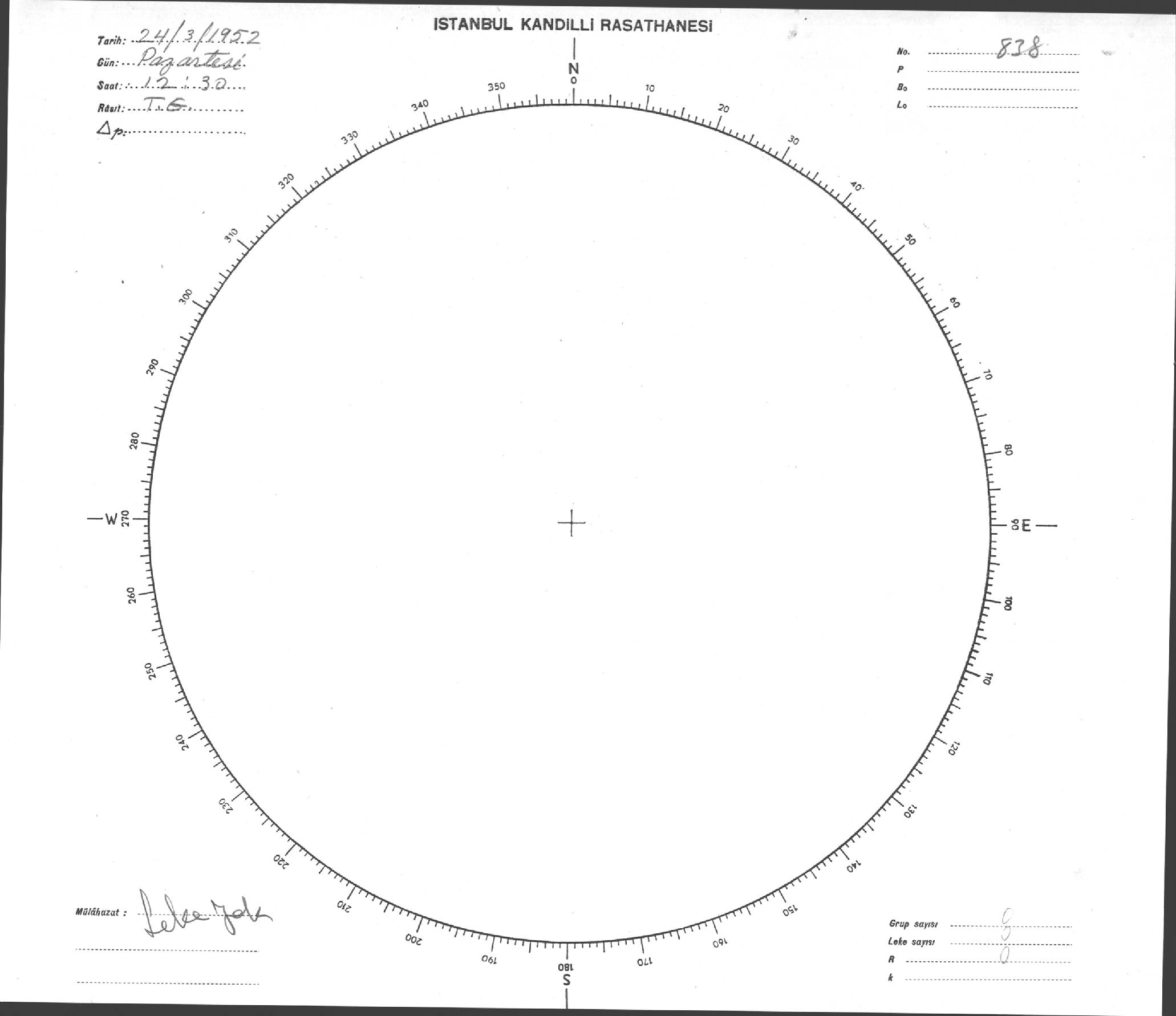 Güneş Lekesi Çizimi - 24.03.1952