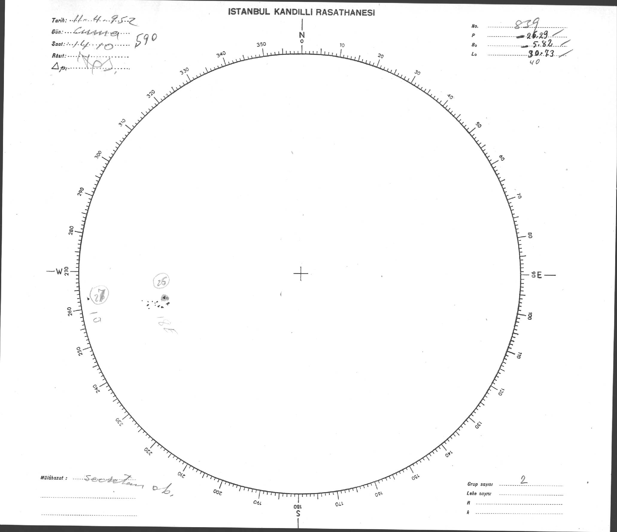 Güneş Lekesi Çizimi - 11.04.1952