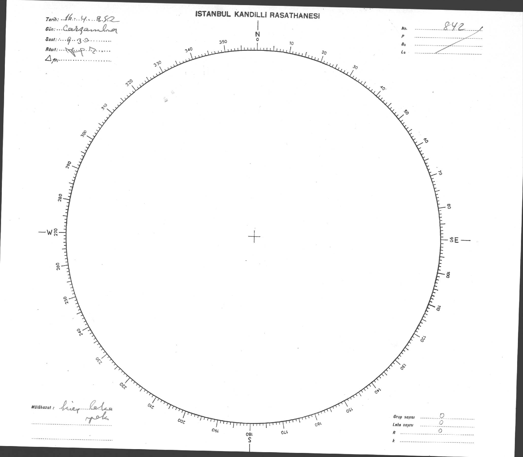 Güneş Lekesi Çizimi - 16.04.1952