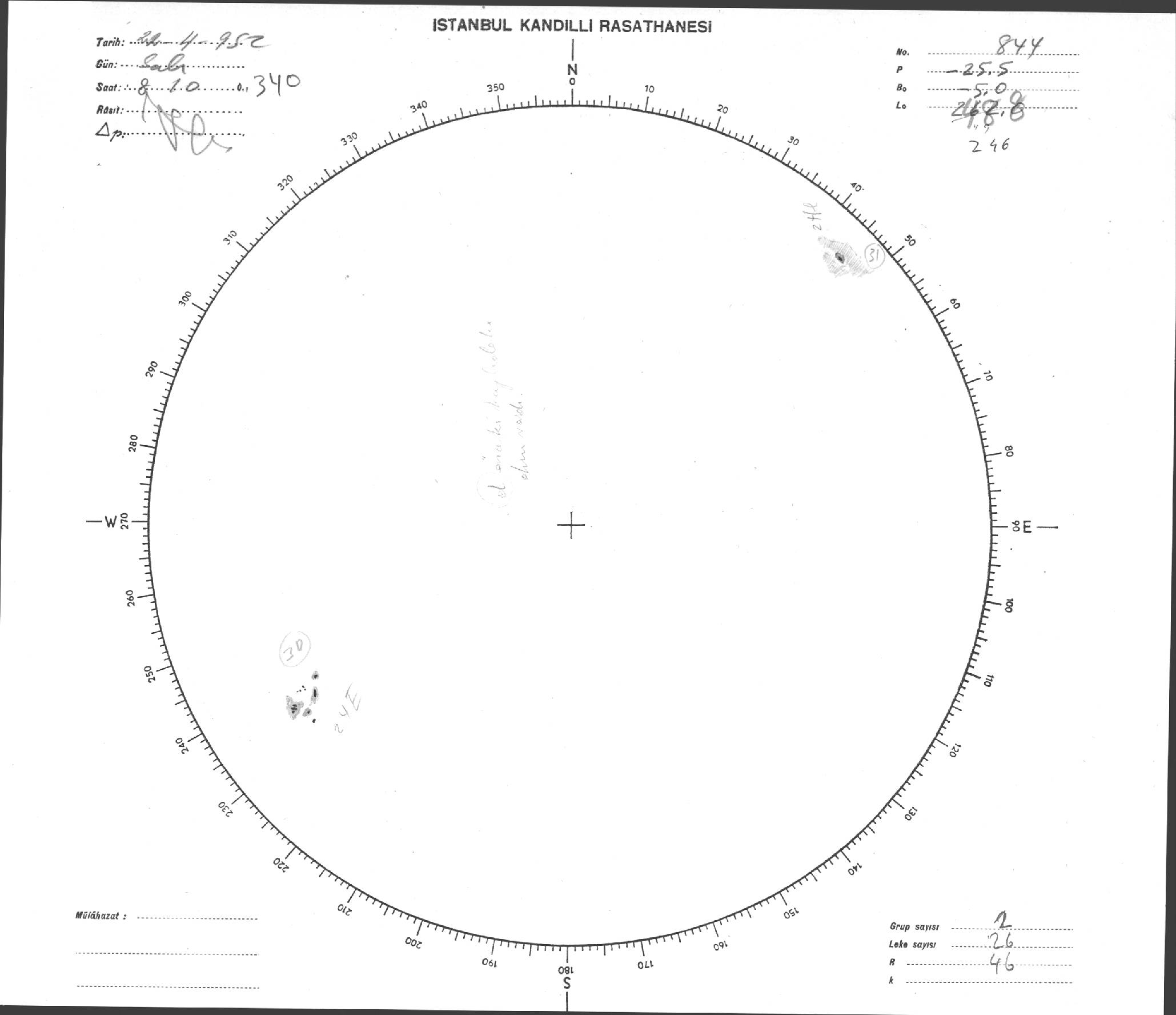 Güneş Lekesi Çizimi - 22.04.1952