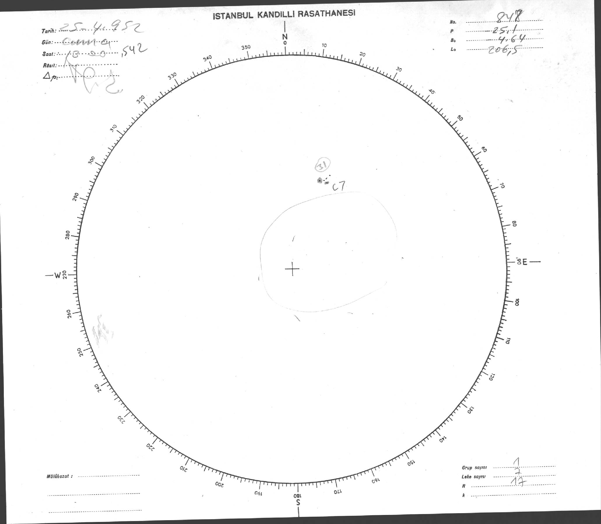 Güneş Lekesi Çizimi - 25.04.1952