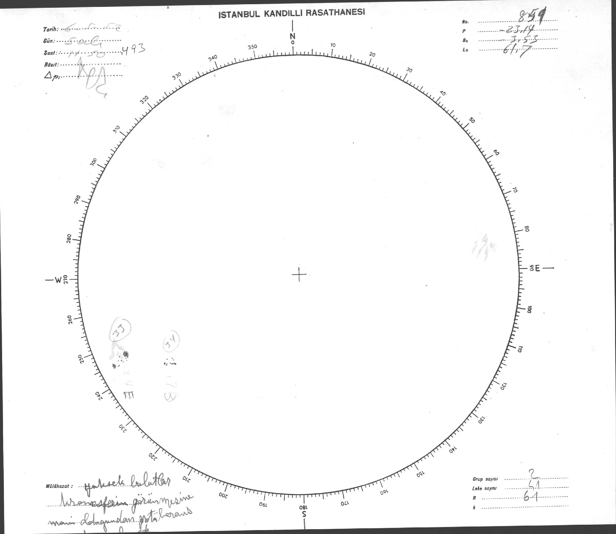Güneş Lekesi Çizimi - 06.05.1952