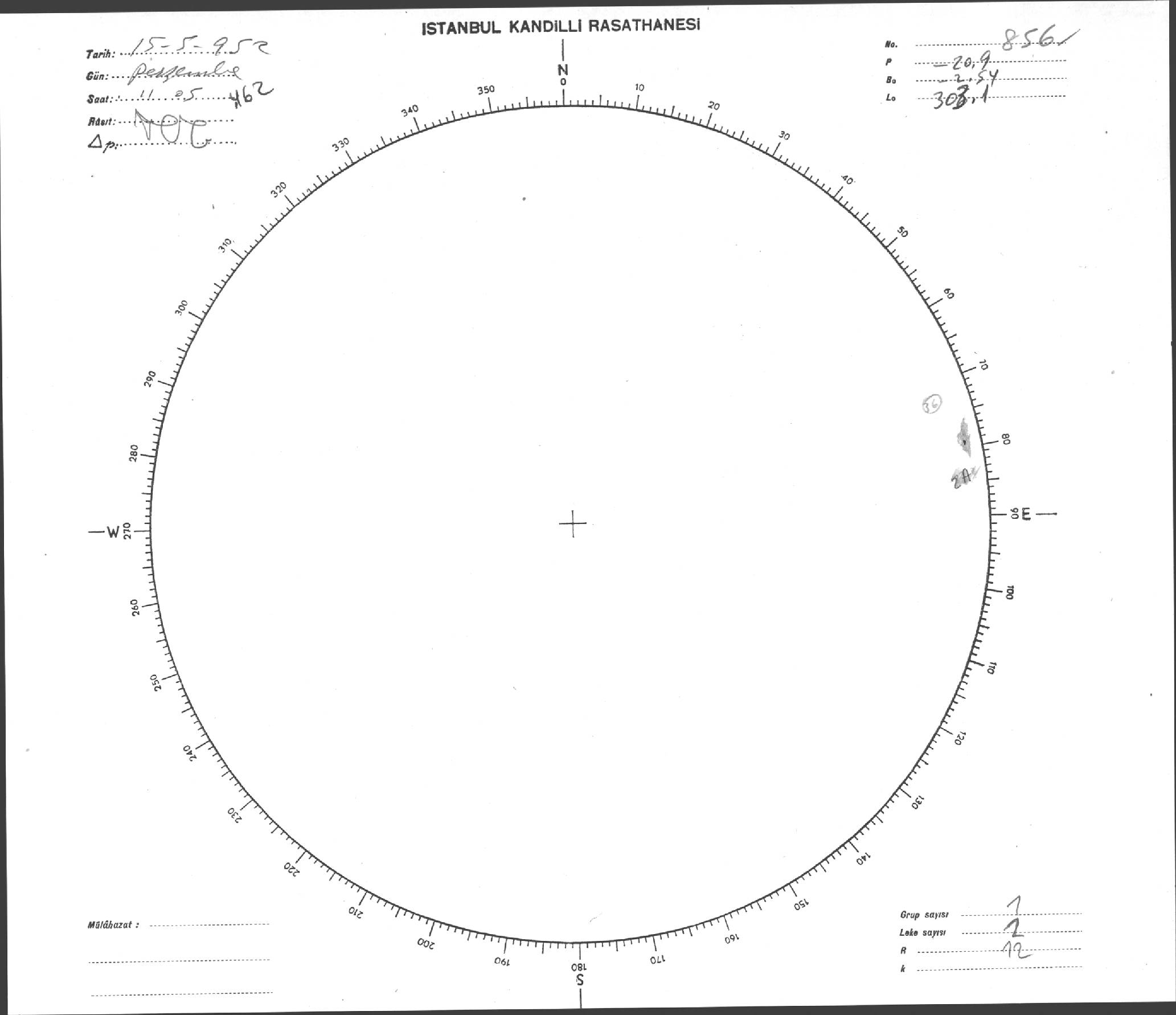Güneş Lekesi Çizimi - 15.05.1952