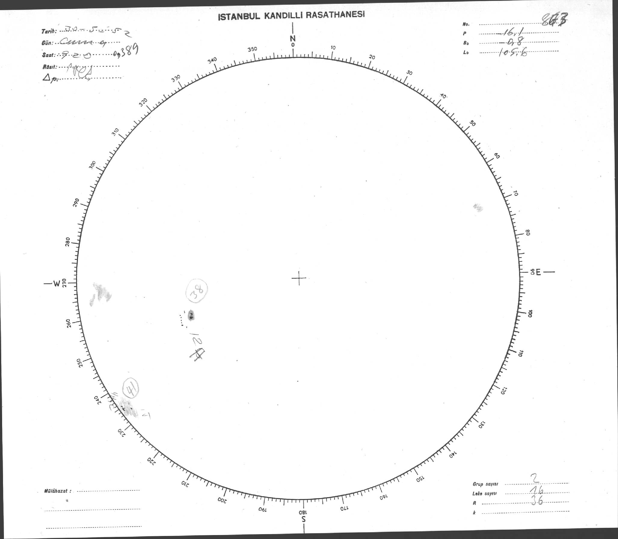 Güneş Lekesi Çizimi - 30.05.1952