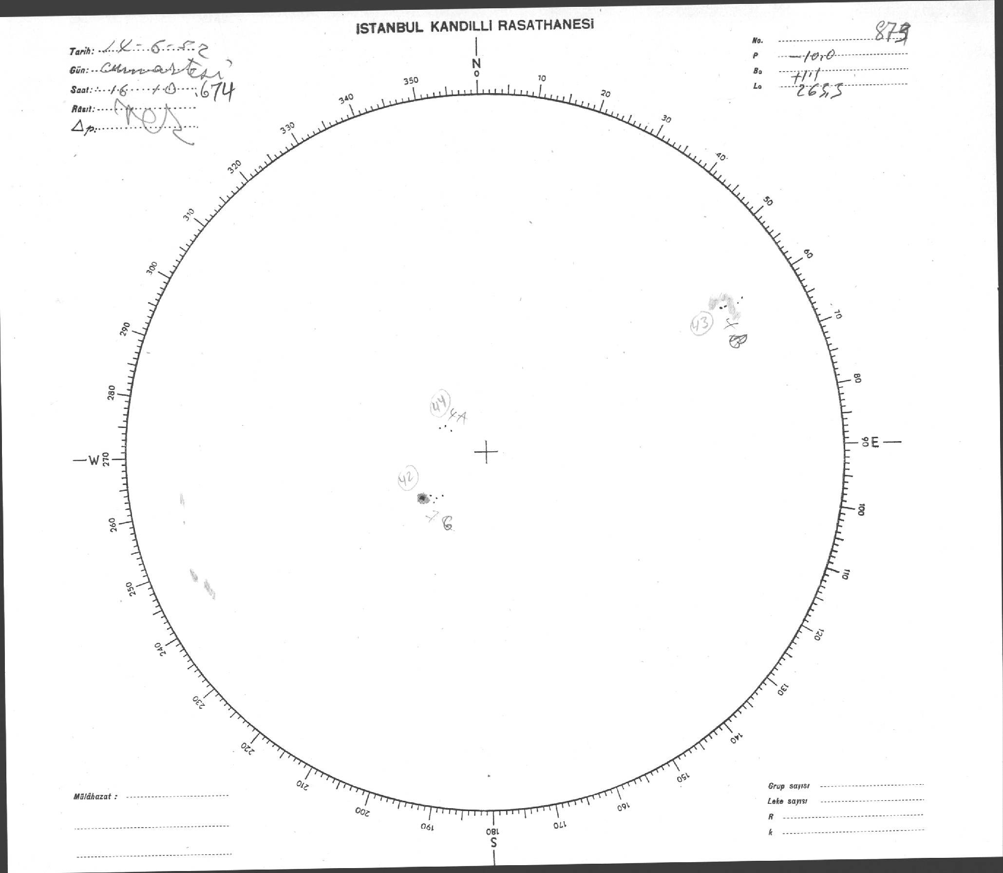 Güneş Lekesi Çizimi - 14.06.1952