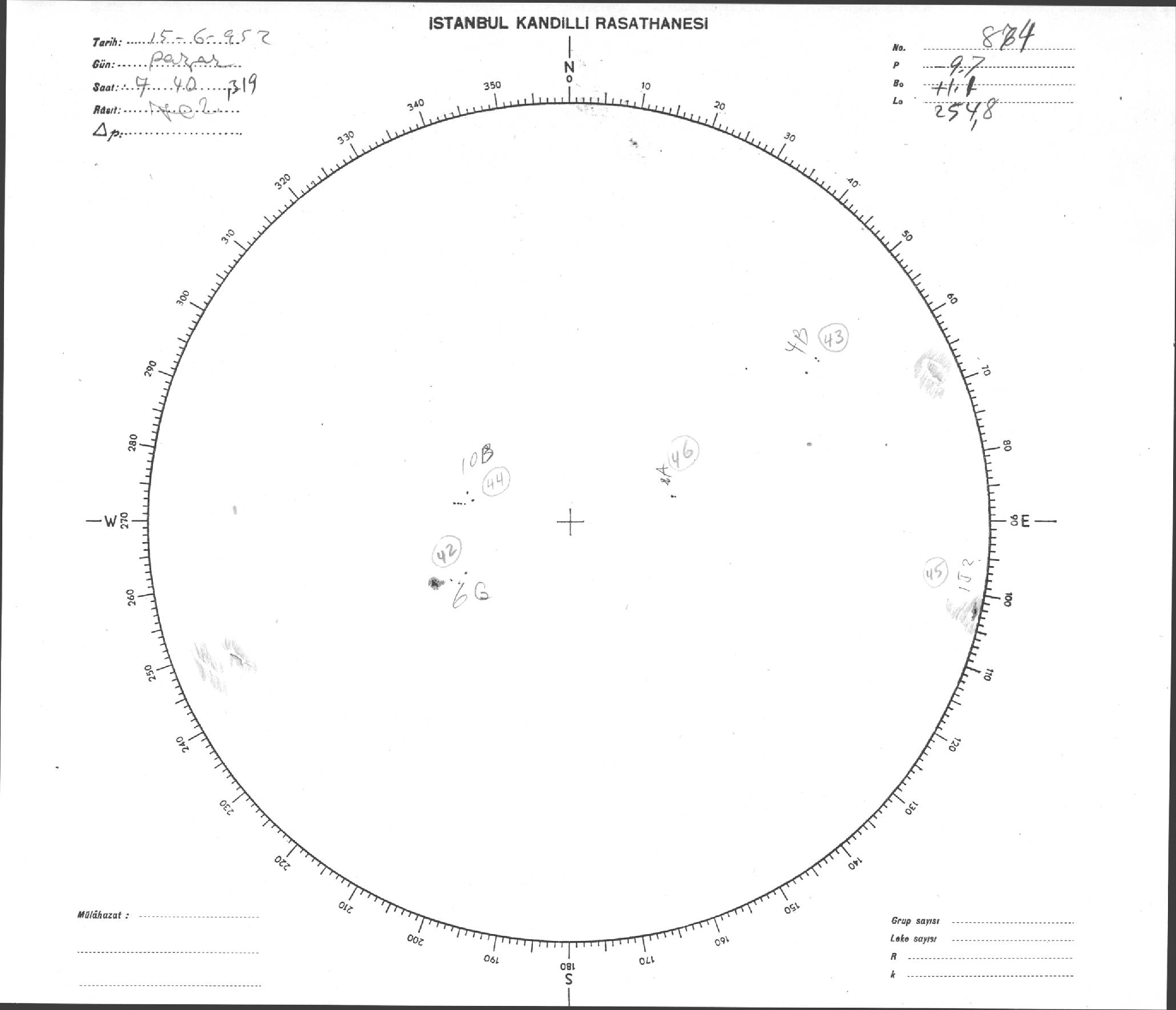 Güneş Lekesi Çizimi - 15.06.1952
