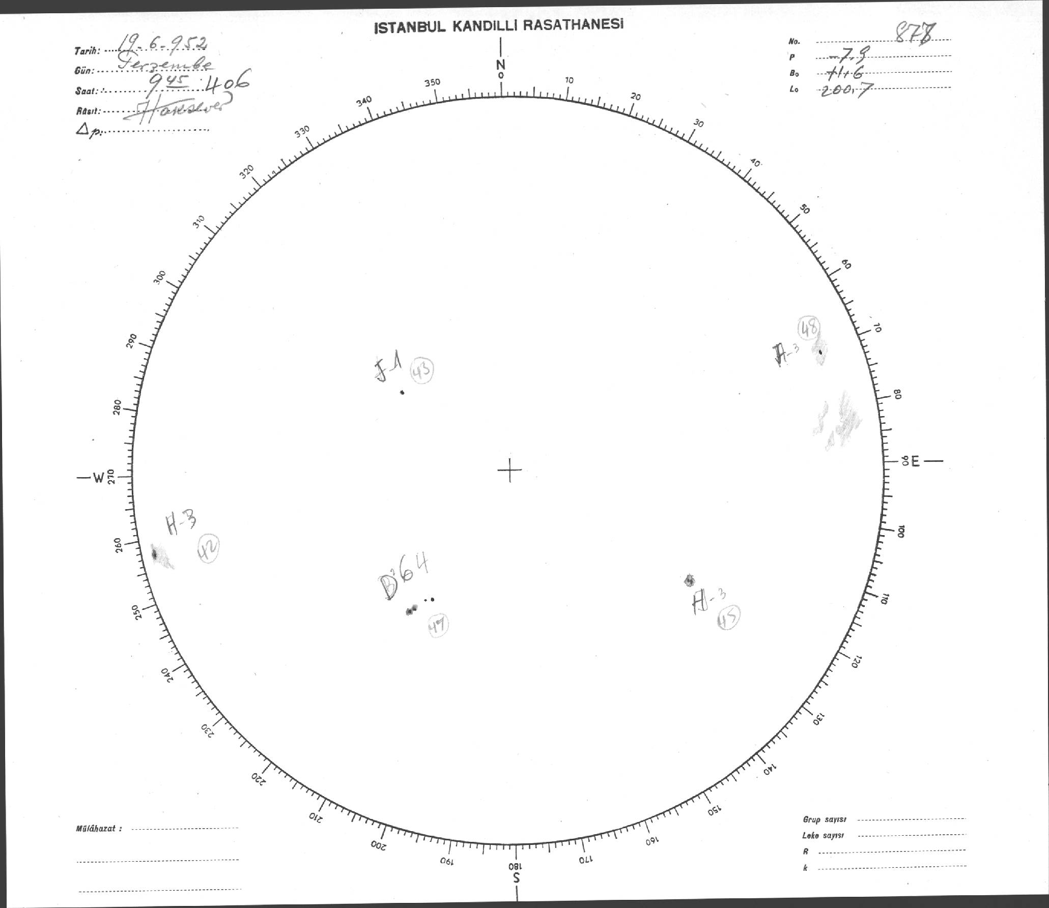 Güneş Lekesi Çizimi - 19.06.1952