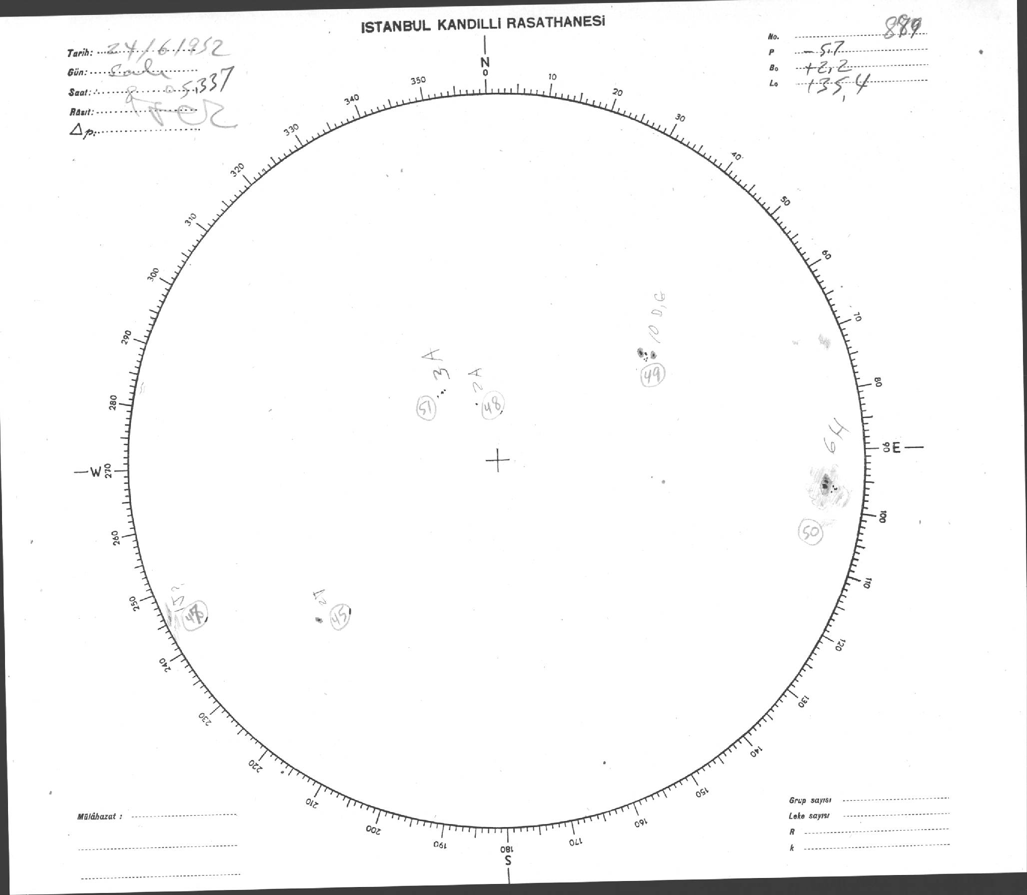 Güneş Lekesi Çizimi - 24.06.1952