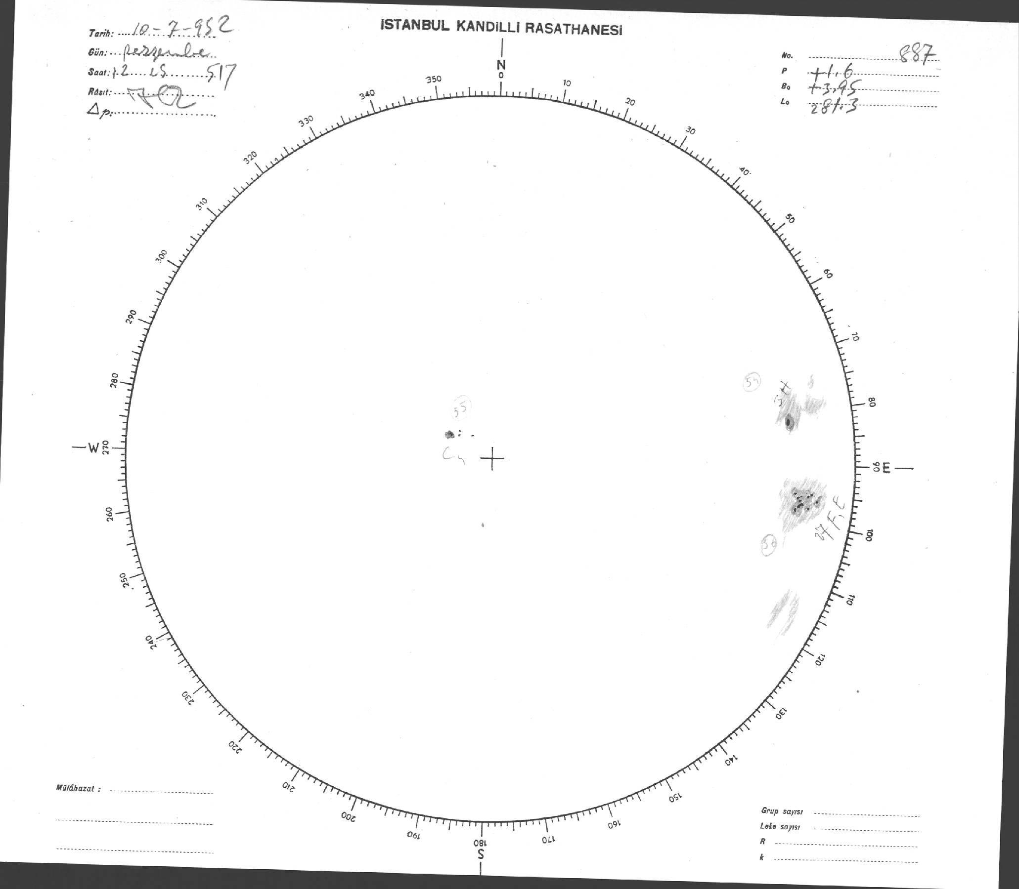 Güneş Lekesi Çizimi - 10.07.1952