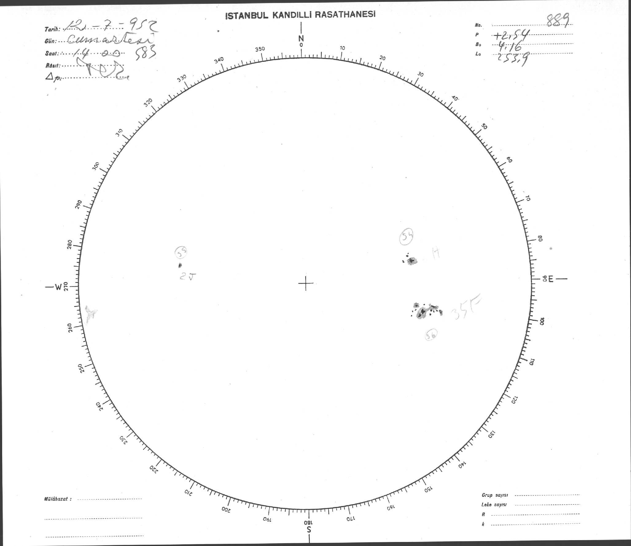 Güneş Lekesi Çizimi - 12.07.1952