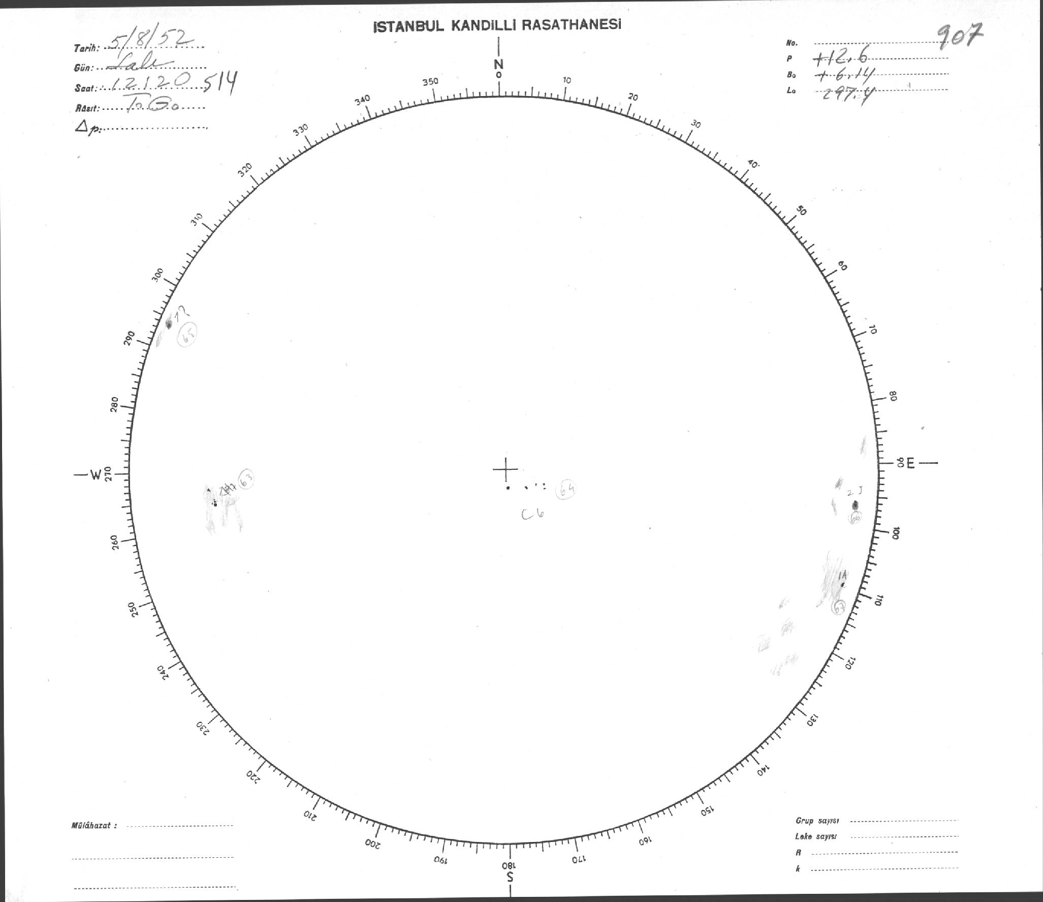 Güneş Lekesi Çizimi - 05.08.1952