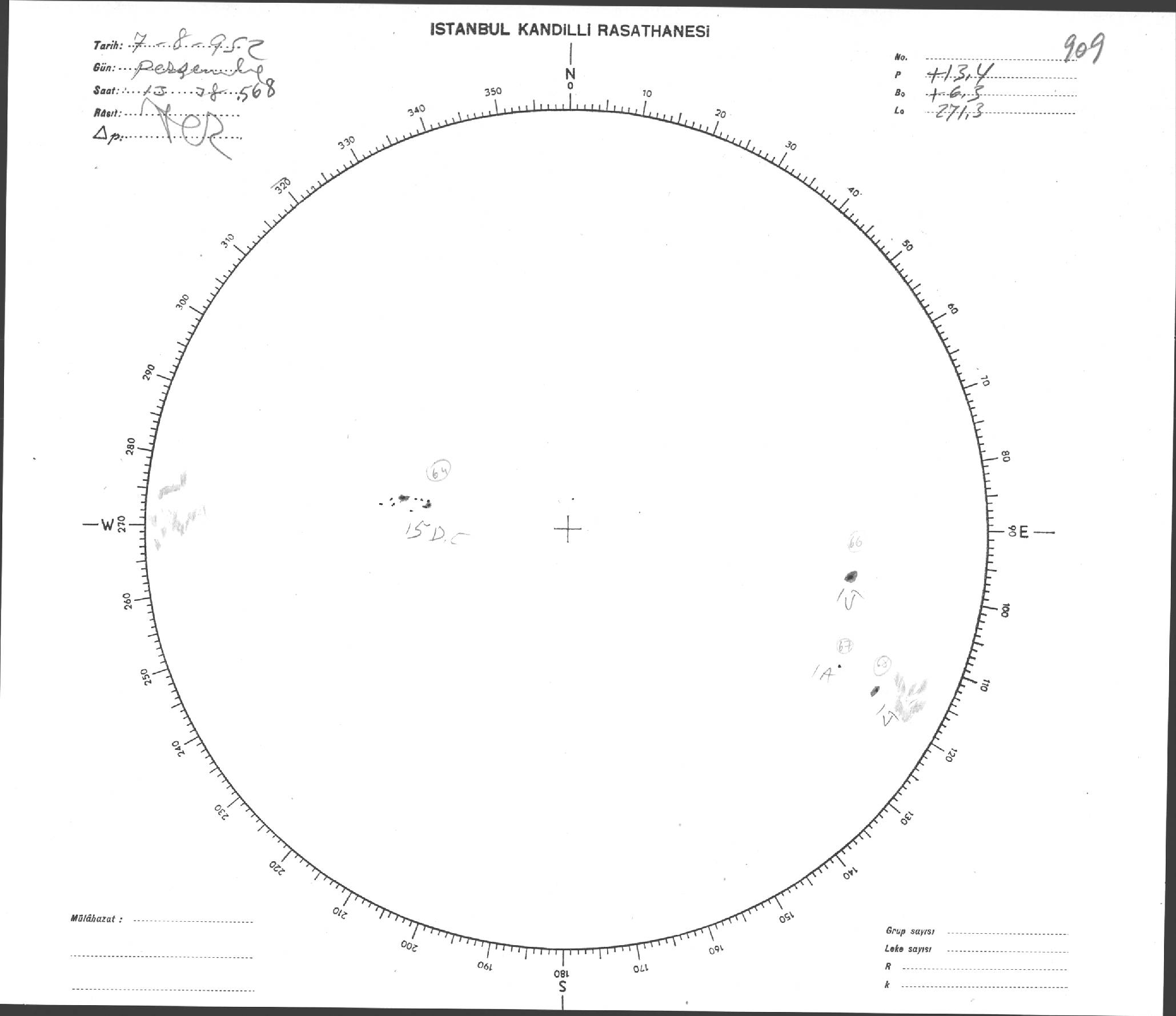 Güneş Lekesi Çizimi - 07.08.1952