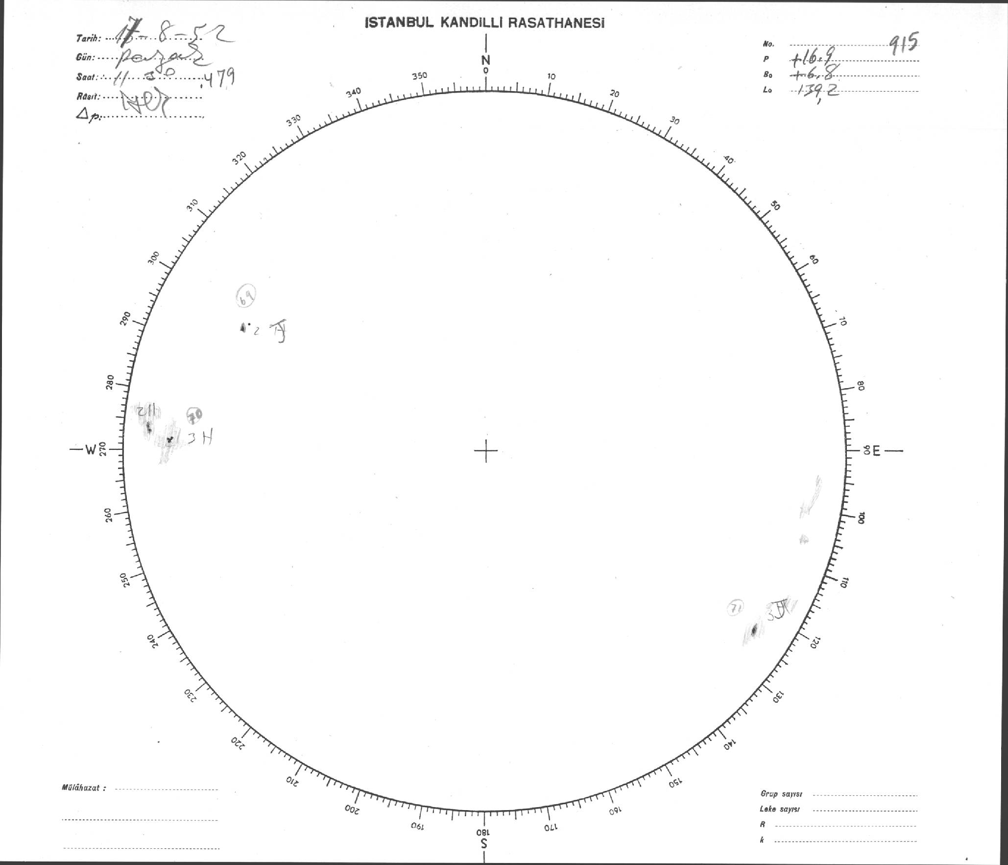 Güneş Lekesi Çizimi - 17.08.1952