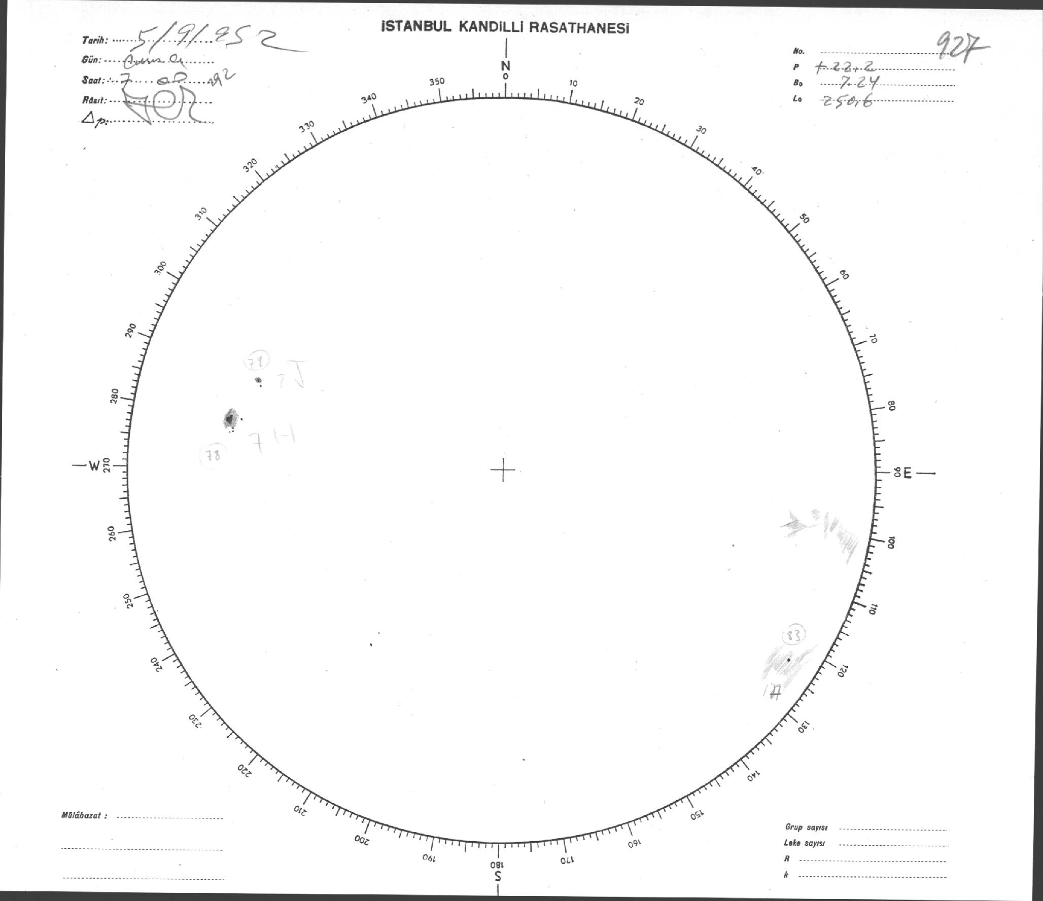 Güneş Lekesi Çizimi - 05.09.1952