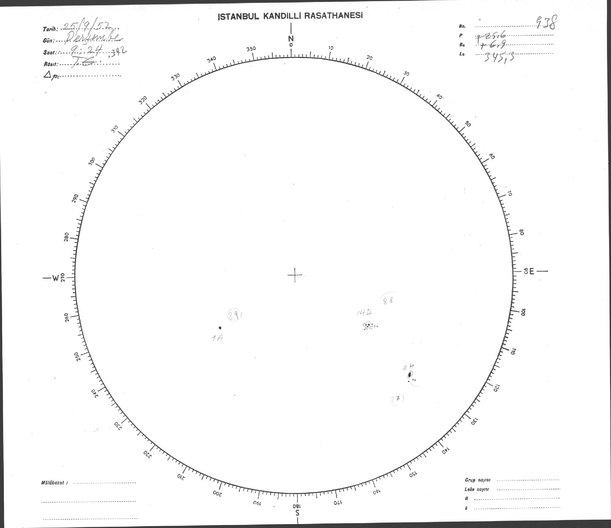 Güneş Lekesi Çizimi - 25.09.1952
