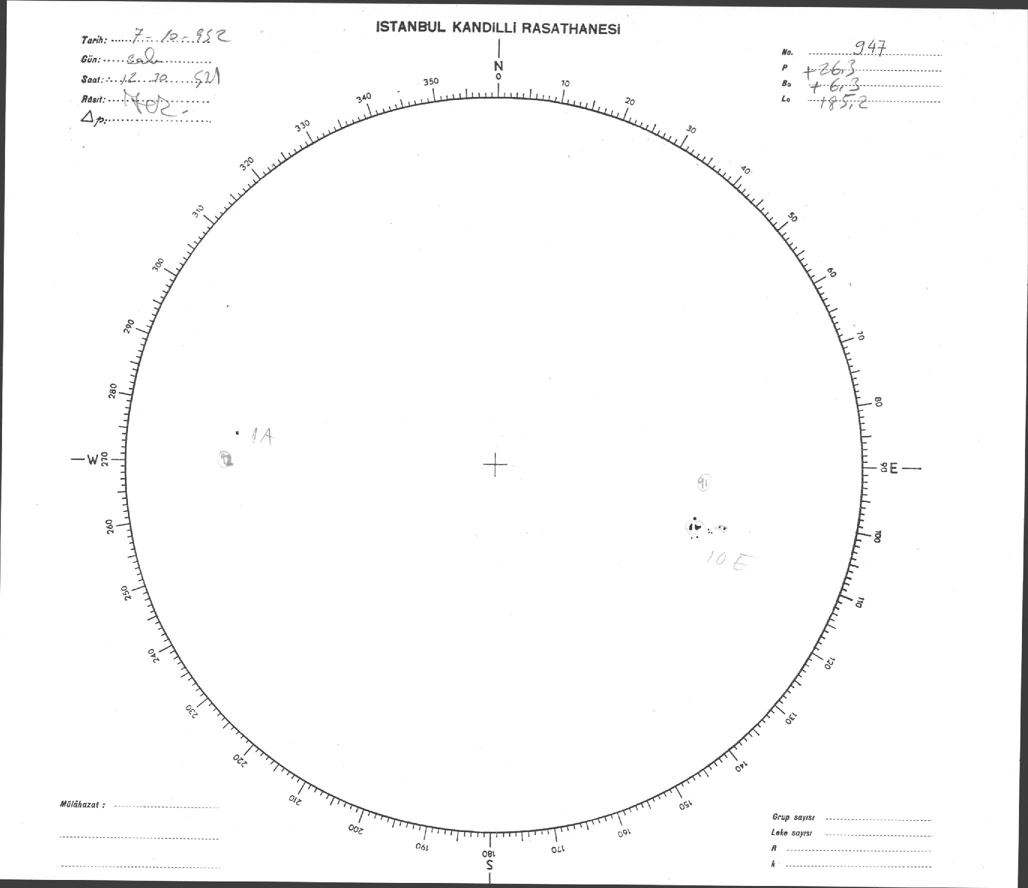Güneş Lekesi Çizimi - 07.10.1952