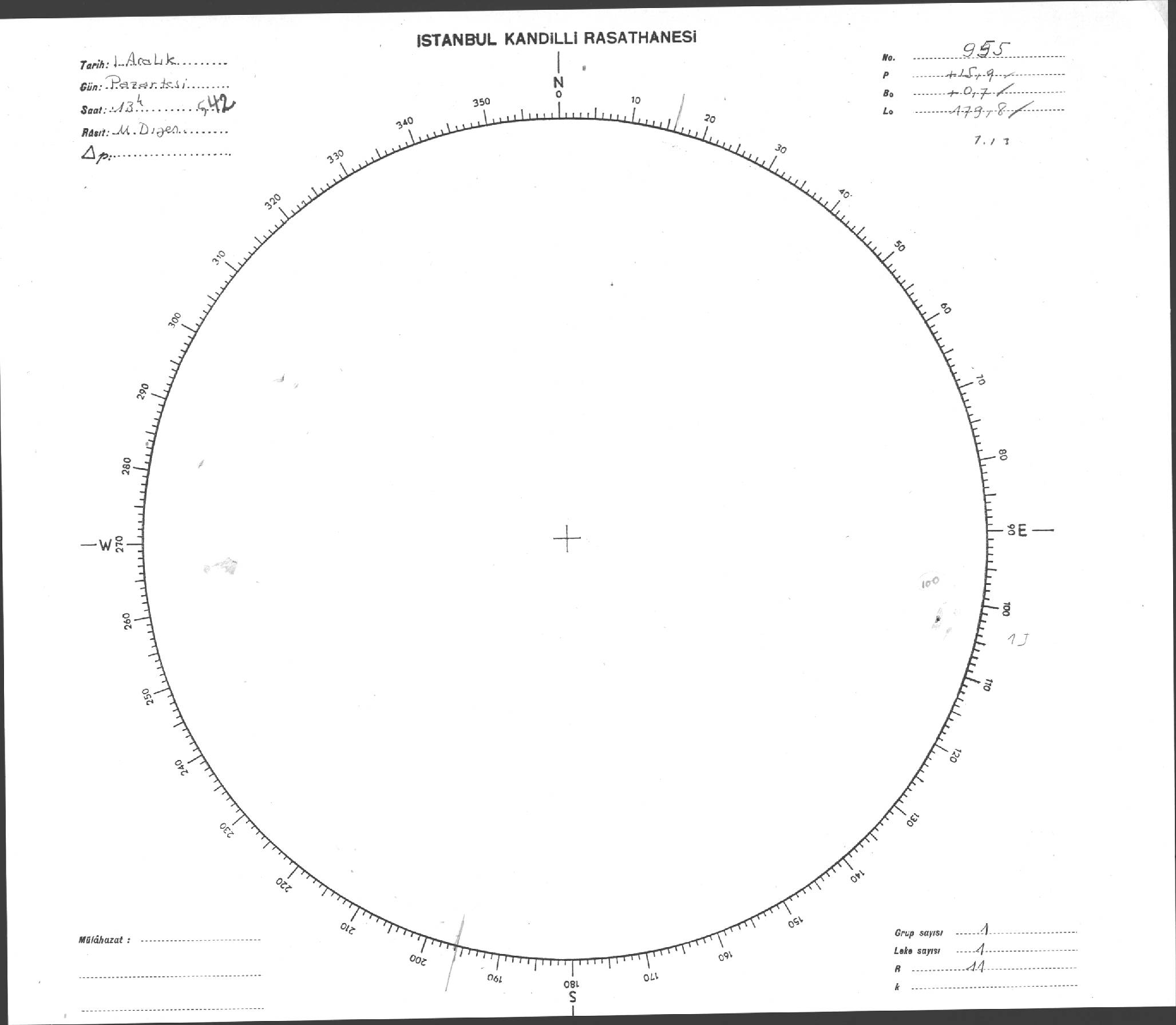 Güneş Lekesi Çizimi - 01.12.1952