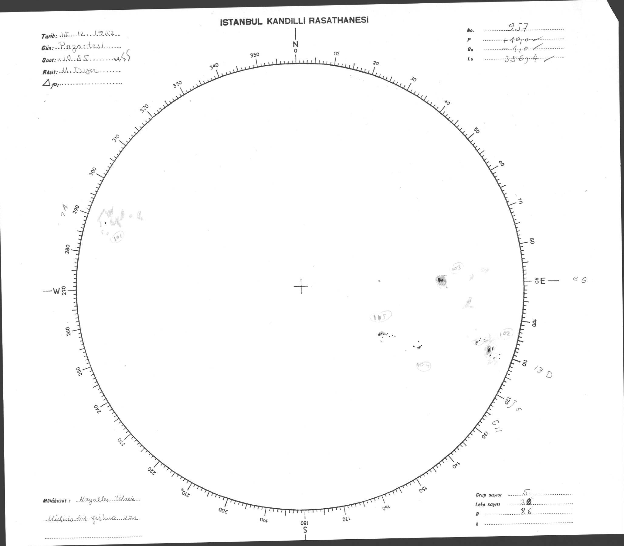 Güneş Lekesi Çizimi - 15.12.1952