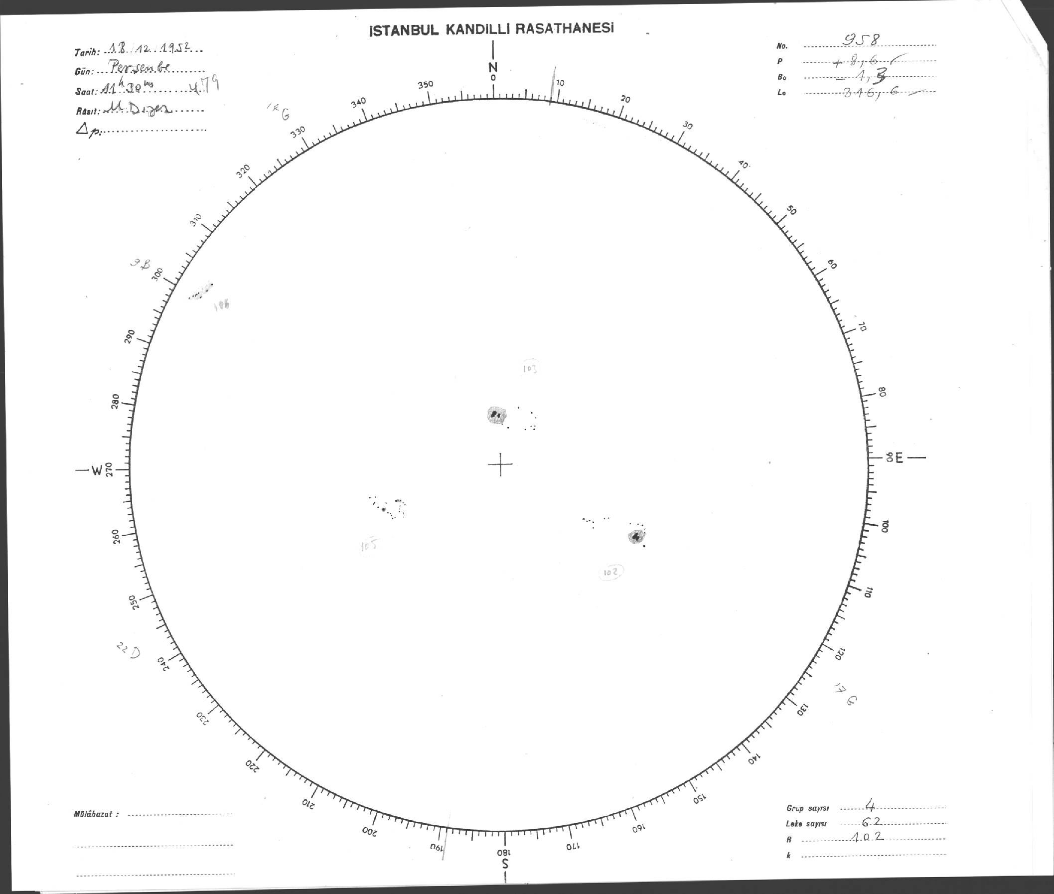 Güneş Lekesi Çizimi - 18.12.1952