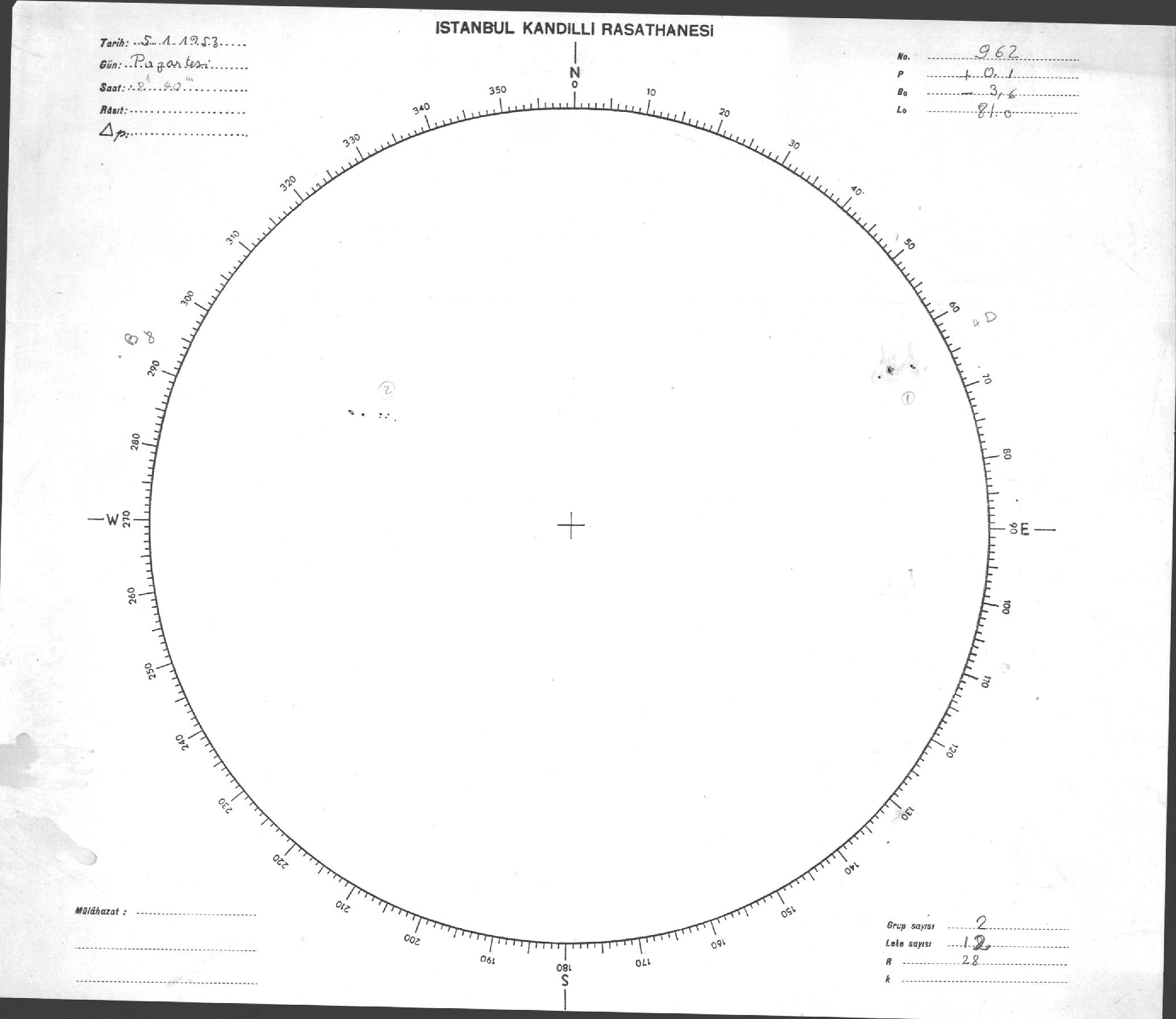 Güneş Lekesi Çizimi - 05.01.1953