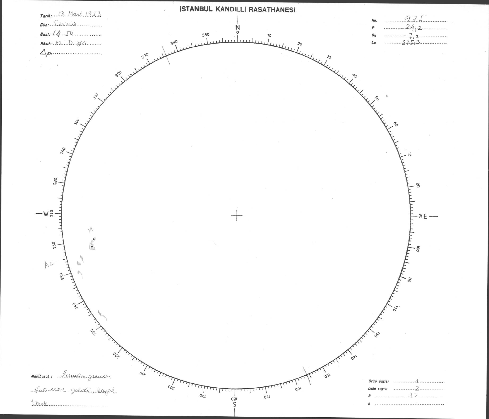 Güneş Lekesi Çizimi - 13.03.1953