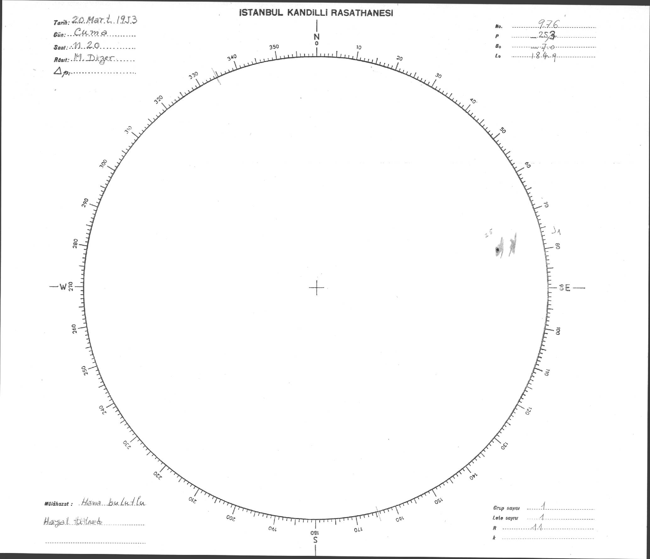 Güneş Lekesi Çizimi - 20.03.1953
