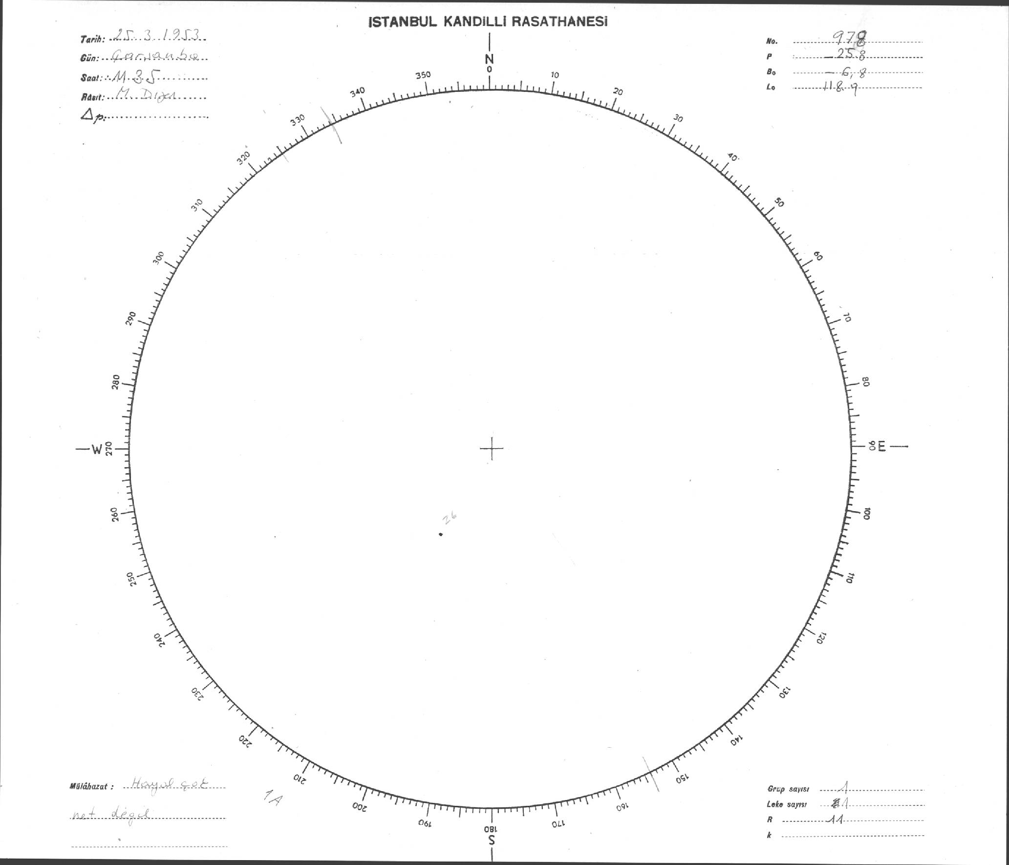 Güneş Lekesi Çizimi - 25.03.1953