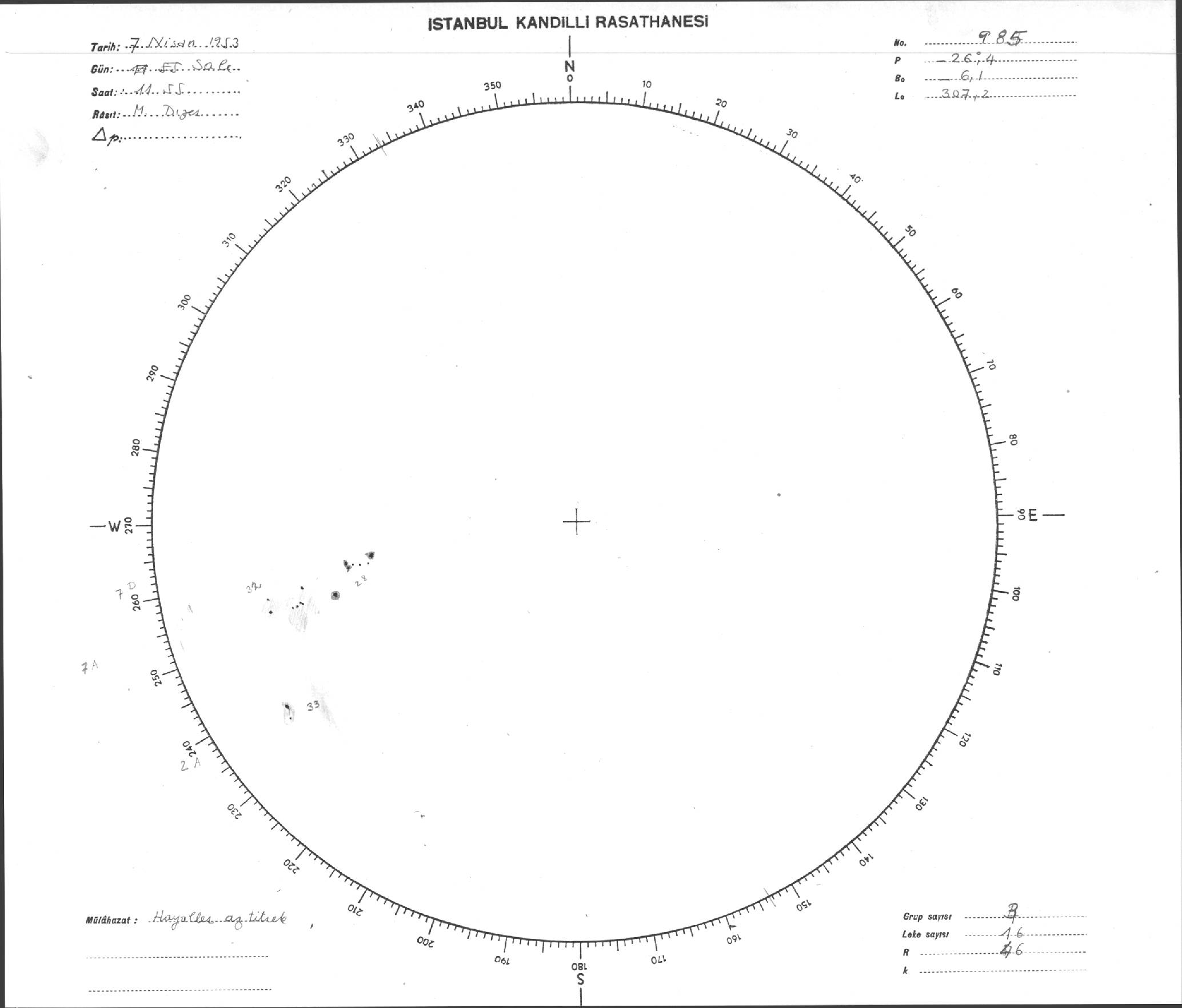 Güneş Lekesi Çizimi - 07.04.1953