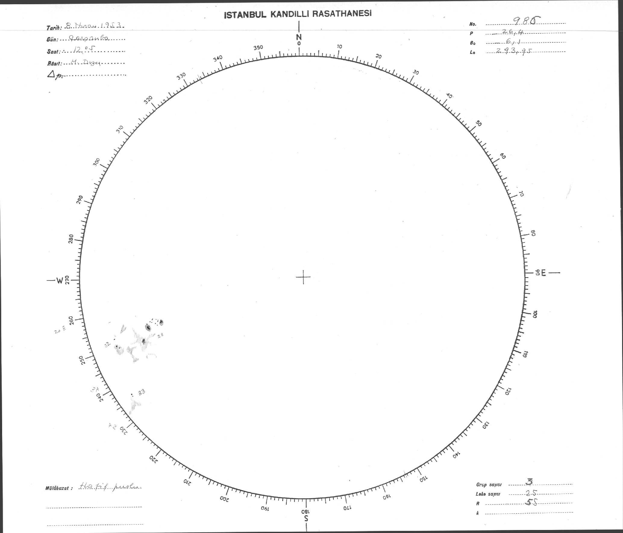 Güneş Lekesi Çizimi - 08.04.1953