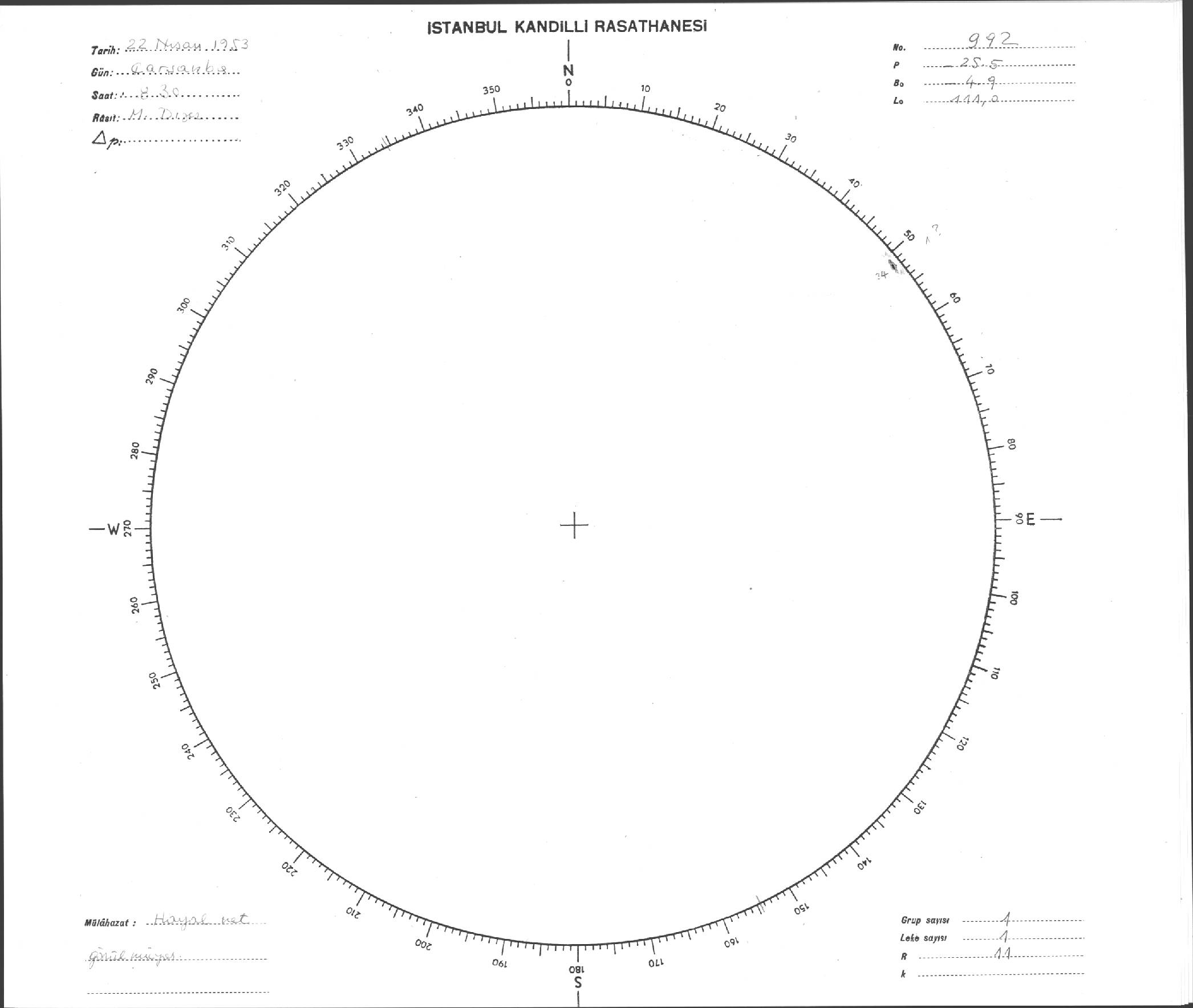 Güneş Lekesi Çizimi - 22.04.1953